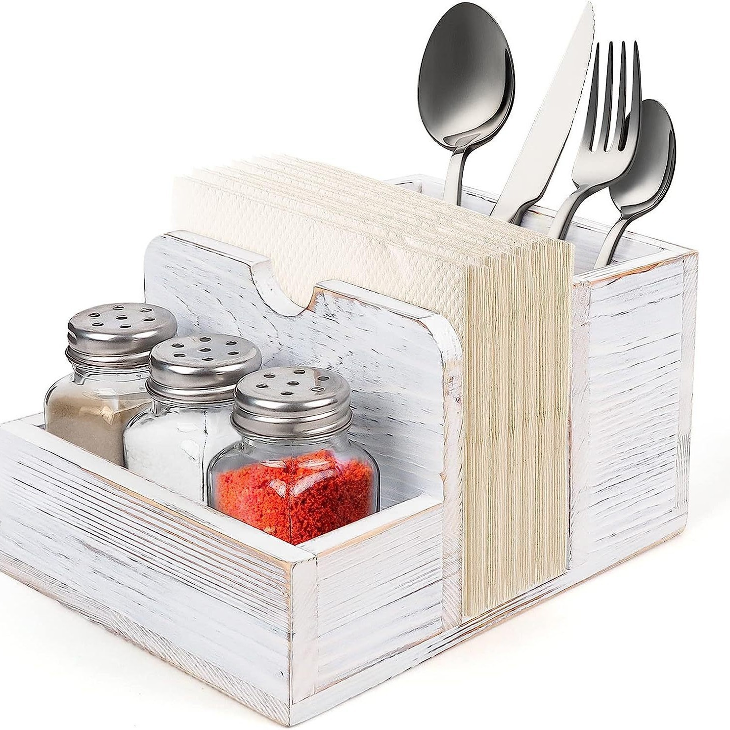 조미료 병 보관함이 있는 혁신적인 목재 티슈 보관함 주방 조리대 레스토랑 탁상 조미료 식기 보관함