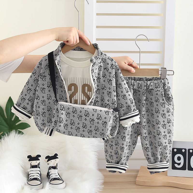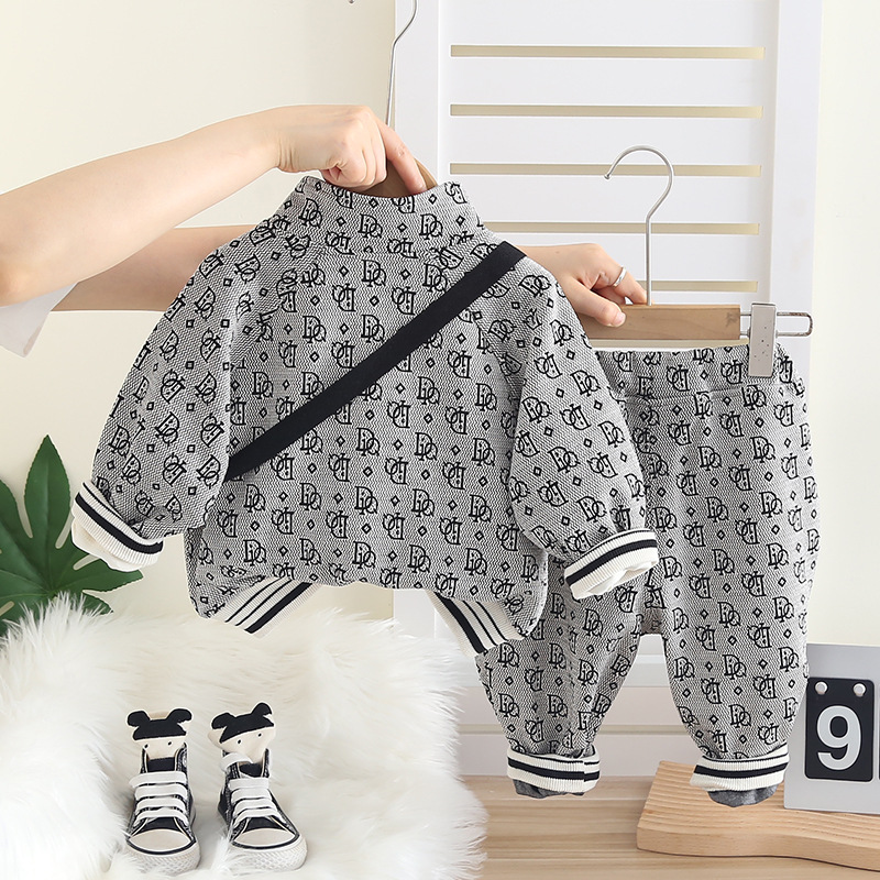 소년의 전체 인쇄 문자 지퍼 셔츠 긴팔 양복 2025 가을 새로운 스타일 아기 소년 캐주얼 바지 3 피스 유행 세트스토어 가기