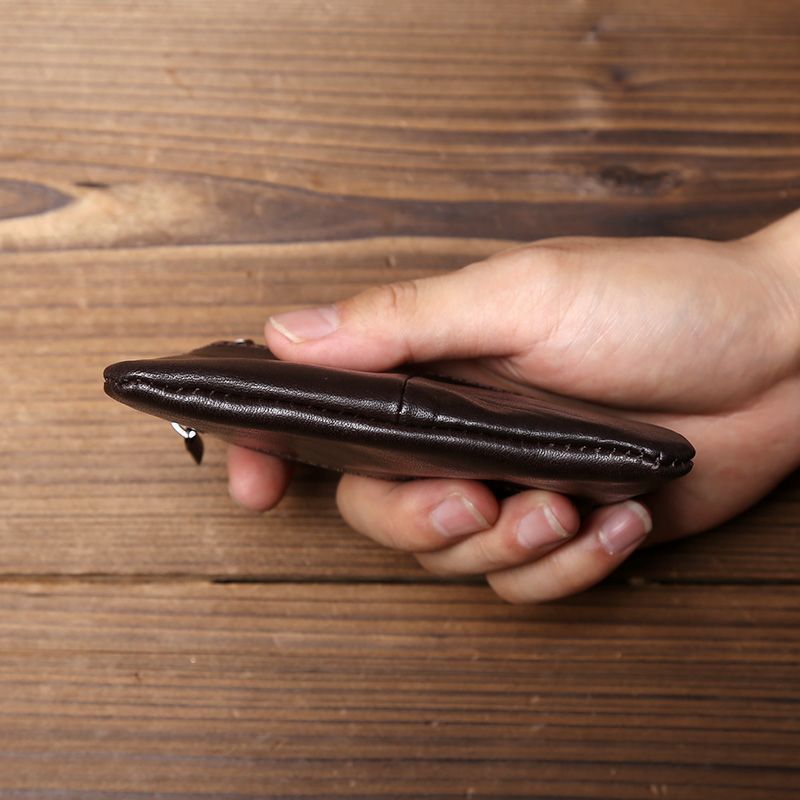국경 간 부드러운 가죽 작은 지갑 명함 초박형 작은 카드 홀더 가죽 간단한 지퍼 운전 면허증 가방 버스 카드 키 가방