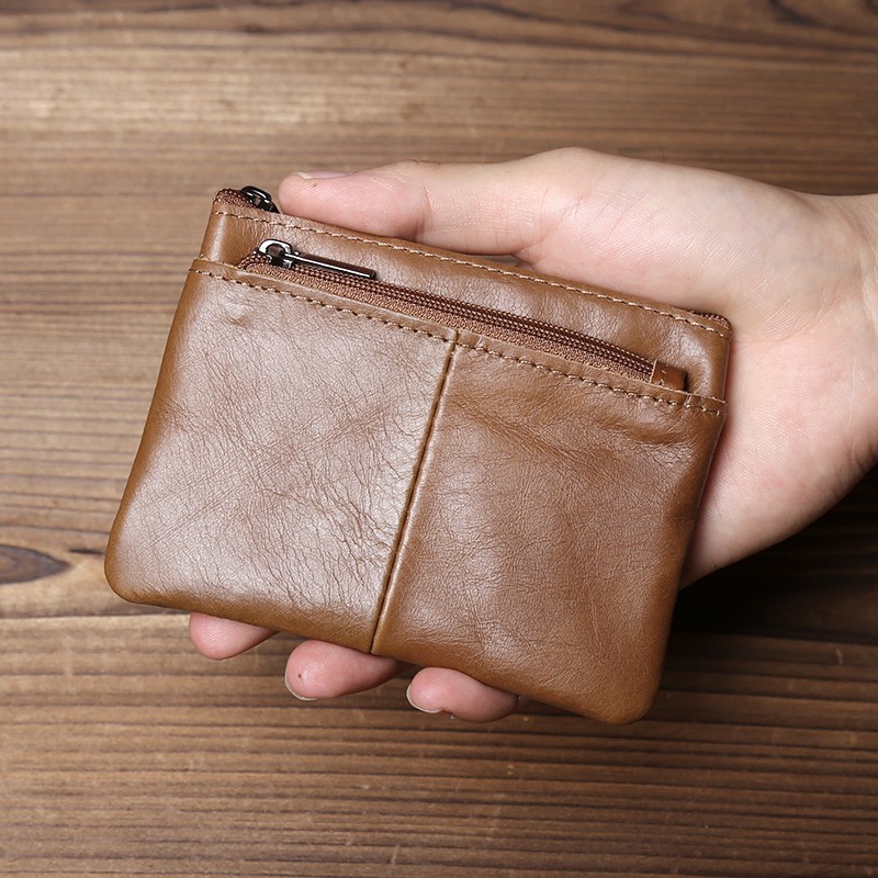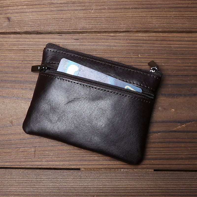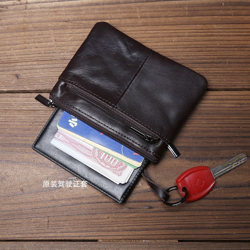 국경 간 부드러운 가죽 작은 지갑 명함 초박형 작은 카드 홀더 가죽 간단한 지퍼 운전 면허증 가방 버스 카드 키 가방스토어 가기