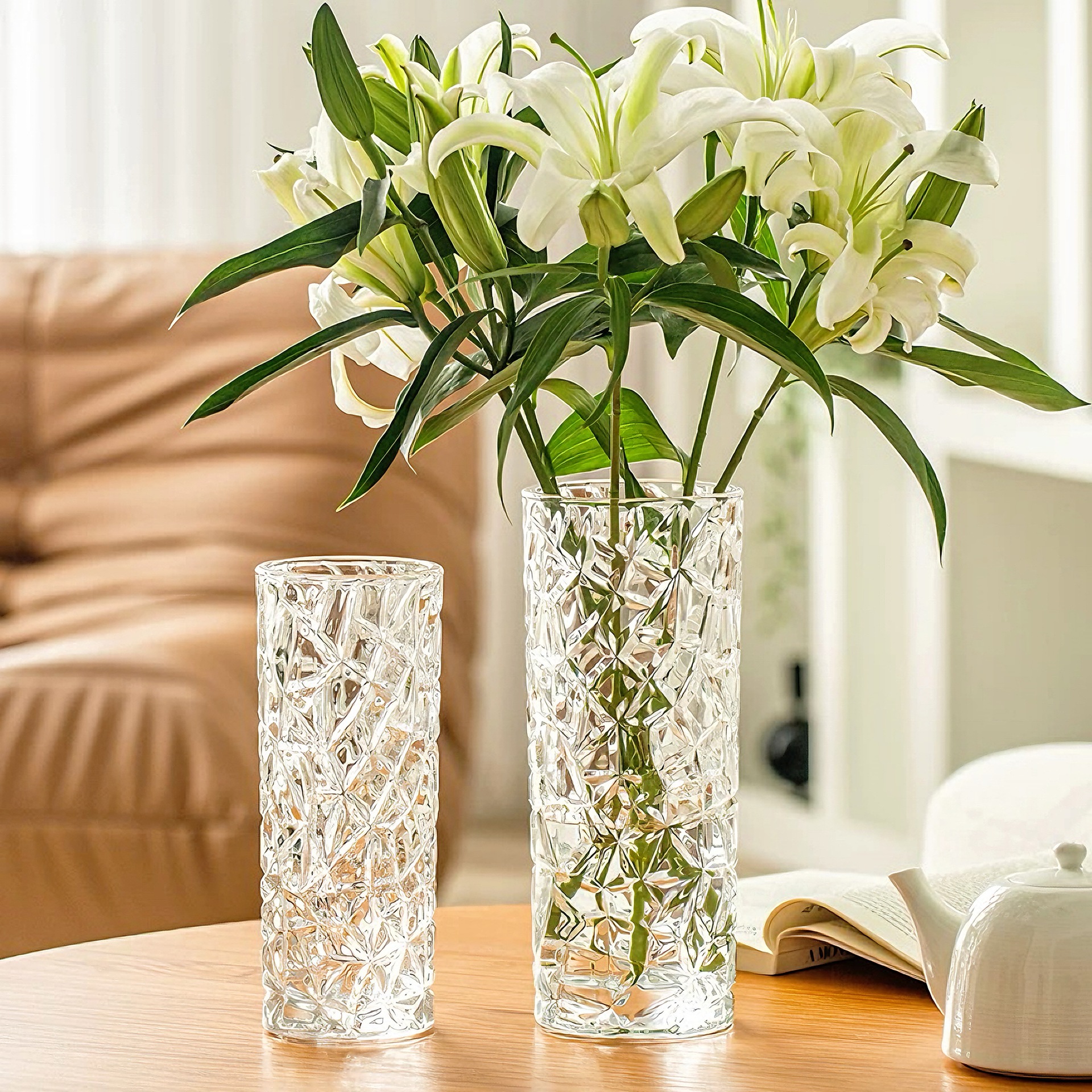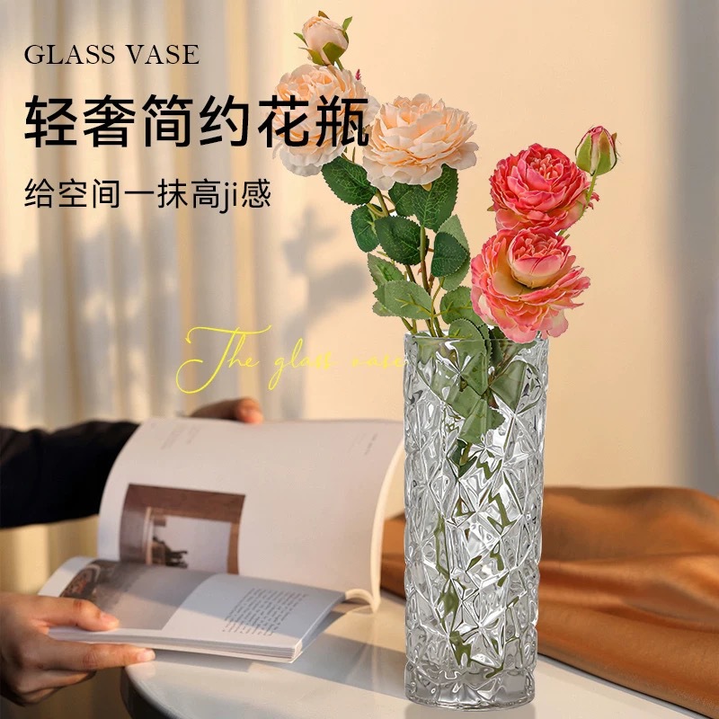 크리스탈 꽃병 고급스러운 거실 식탁 투명 꽃꽂이 장식 인스 스타일 꽃 공장 방수 건조 꽃