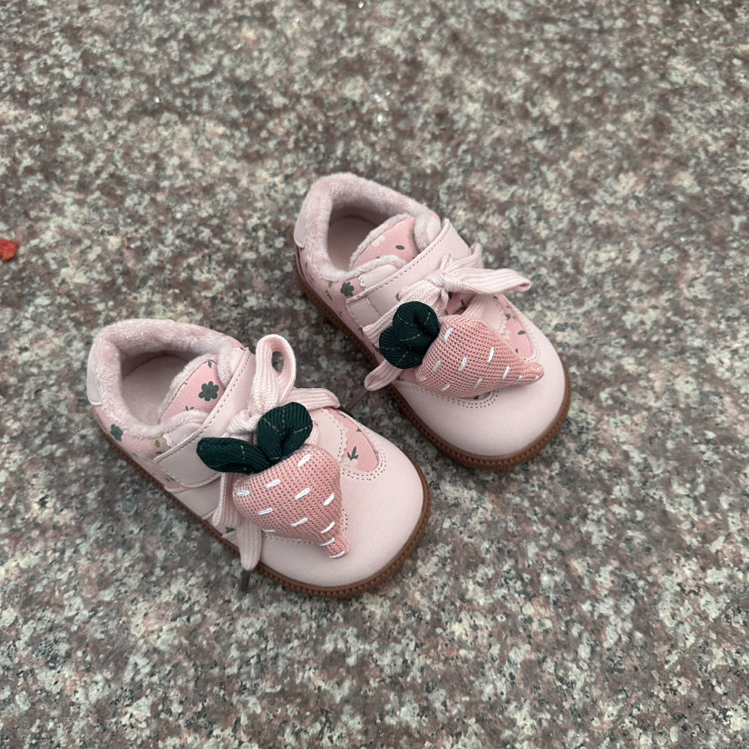 2025 가을 겨울 아기 걸음마 신발, 여자 아기용 부드러운 밑창 귀여운 플러스 벨벳 운동화, 0-3세 패션 편안한 신발