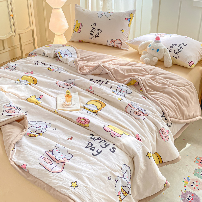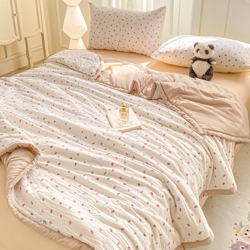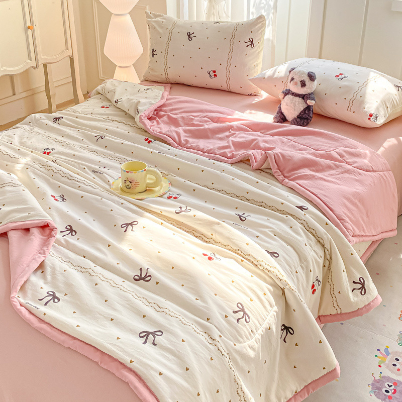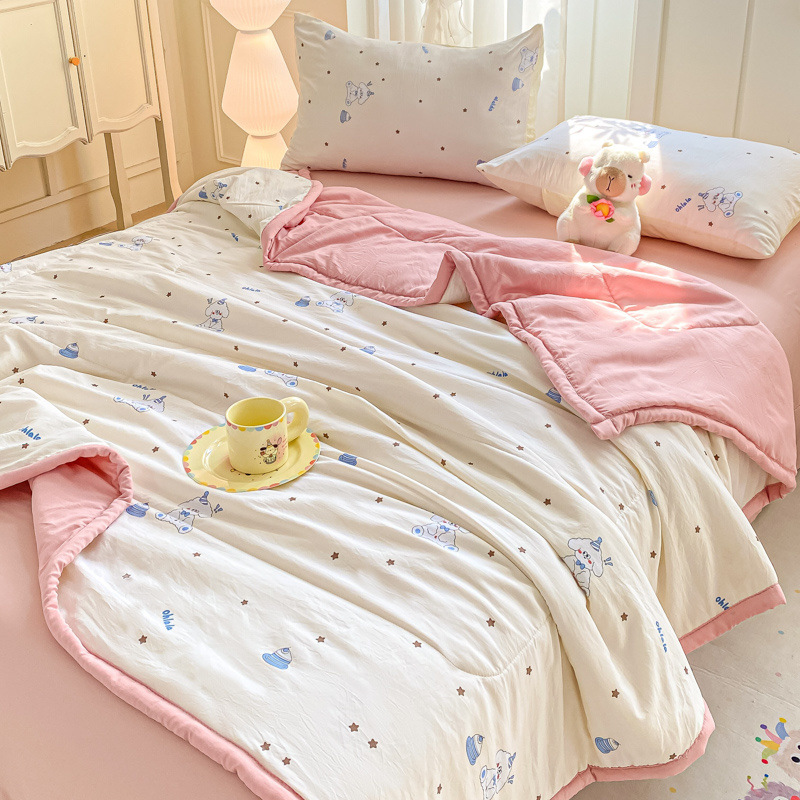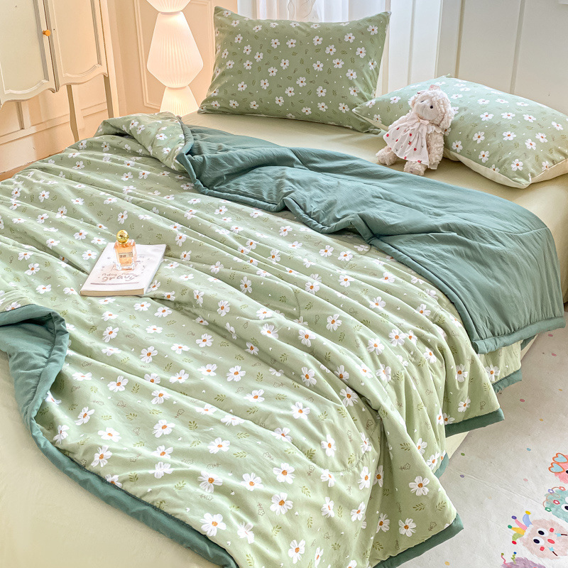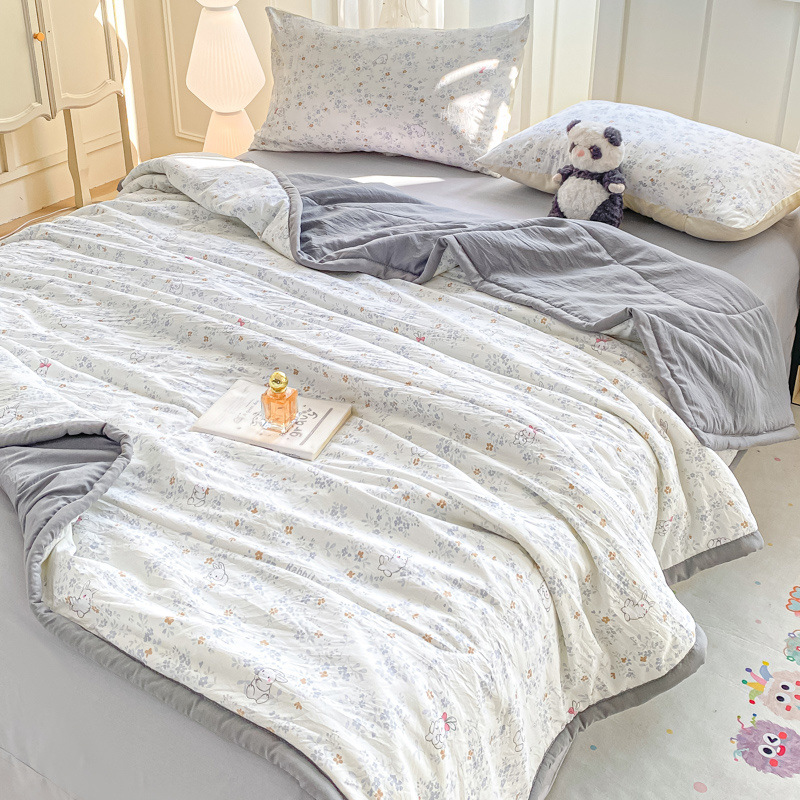 100% 순면 여름 시원한 이불 에어컨 이불 여름 얇은 이불 완전 세탁기로 세탁 가능한 싱글 및 더블 봄, 가을 기숙사 어린이 이불스토어 가기