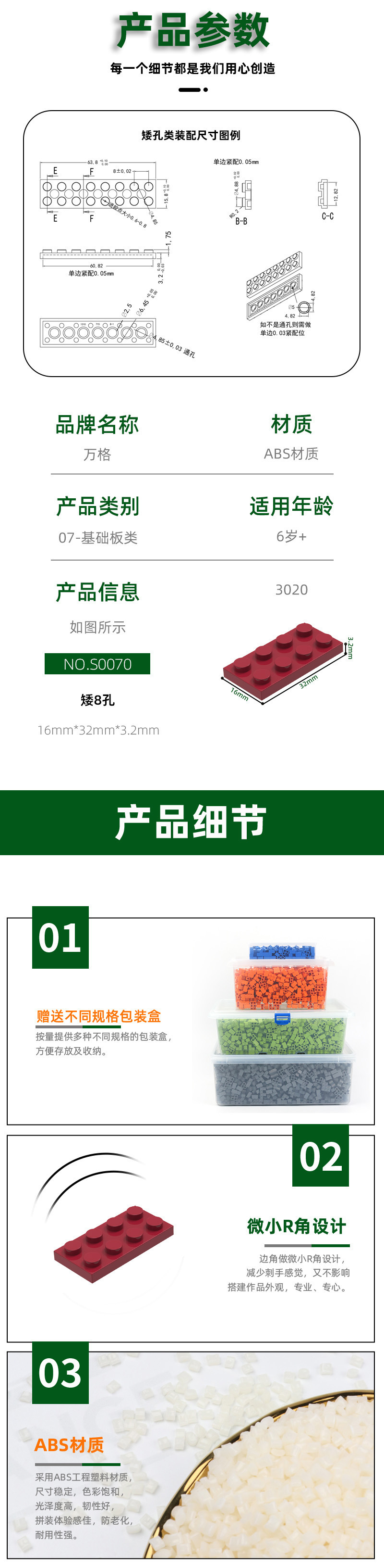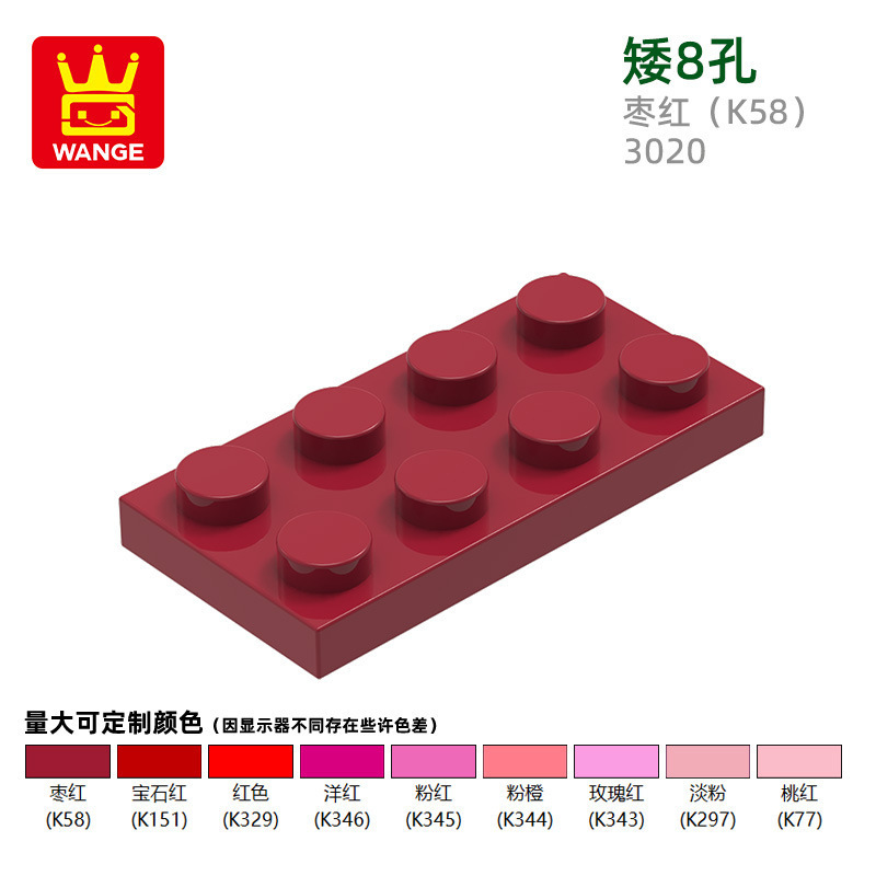 Wange는 3020 조립 부품과 호환되는 작은 입자 국내 빌딩 블록 전문 공급업체입니다. 낮은 8 홀 장난감 액세서리 도매스토어 가기
