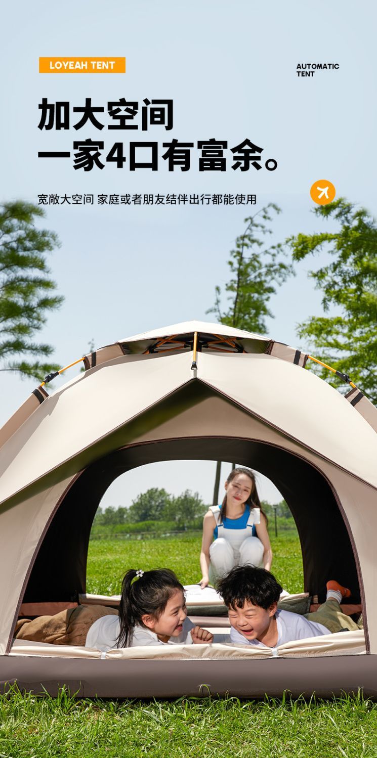 3~4인 가족을 위한 야외 캠핑 및 밤새도록 자는 완전 자동 텐트 두꺼운 방수 단일 및 이중층 야외 캠핑 세트 공장스토어 가기