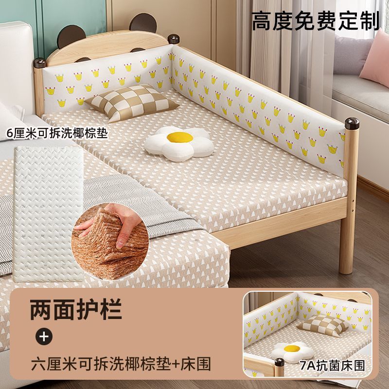 • 양면 가드레일 + 6cm 탈부착 및 세탁 가능한 코코넛 야자 매트리스 + 침대 옆