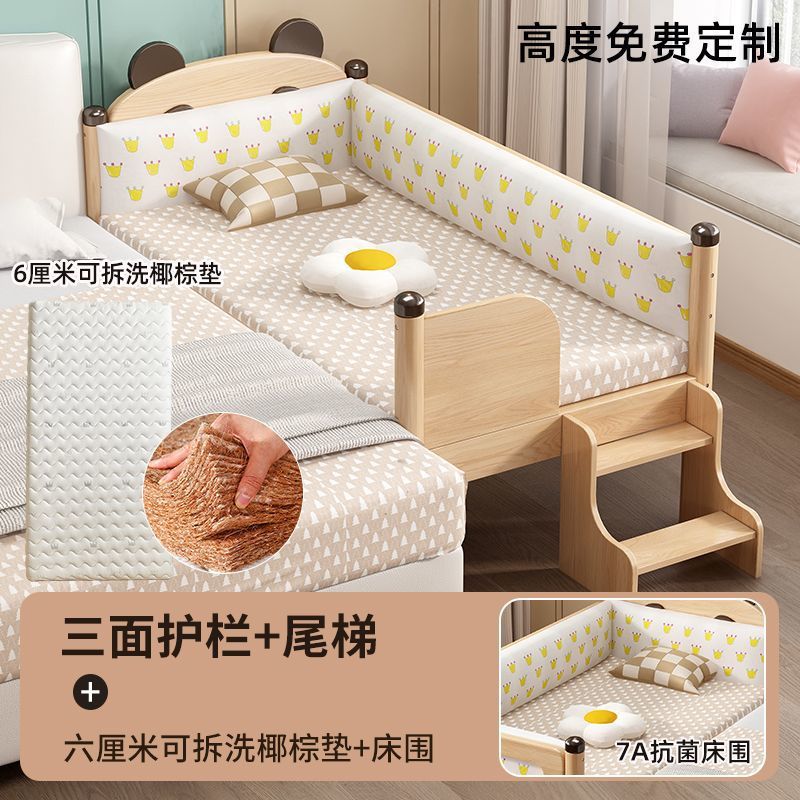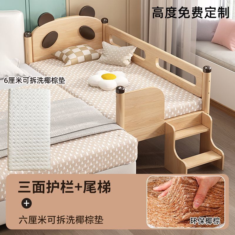 • 3면 가드레일 + 꼬리 사다리 + 6cm 탈부착 및 세탁 가능한 코코넛 야자 매트리스 + 침대 옆