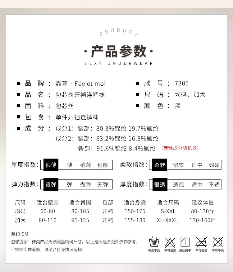 Feimu 코어 실크 오픈 가랑이 팬티 스타킹 7305 섹시한 스타킹 섹시한 검은 실크 가볍고 반투명 유혹 50/팩스토어 가기