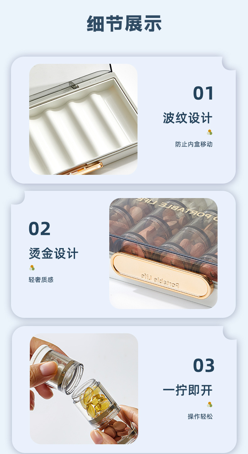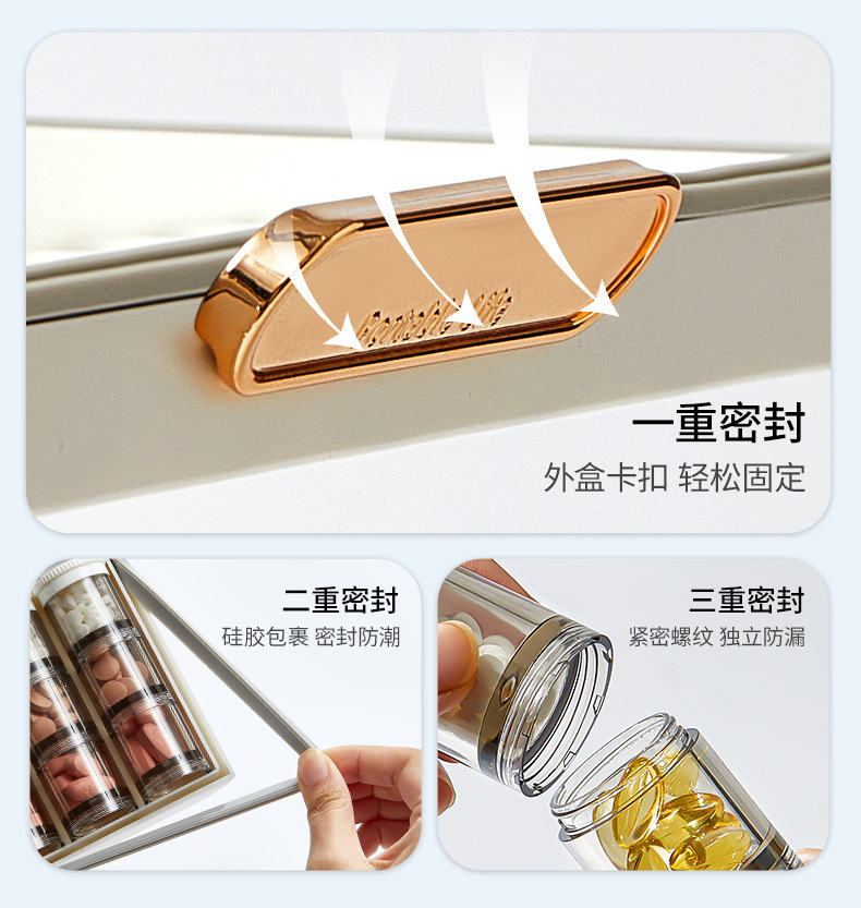 제가의 수납박스, 분할수납병, 투명밀봉, 방습분류, 알약칸, 휴대용수납박스