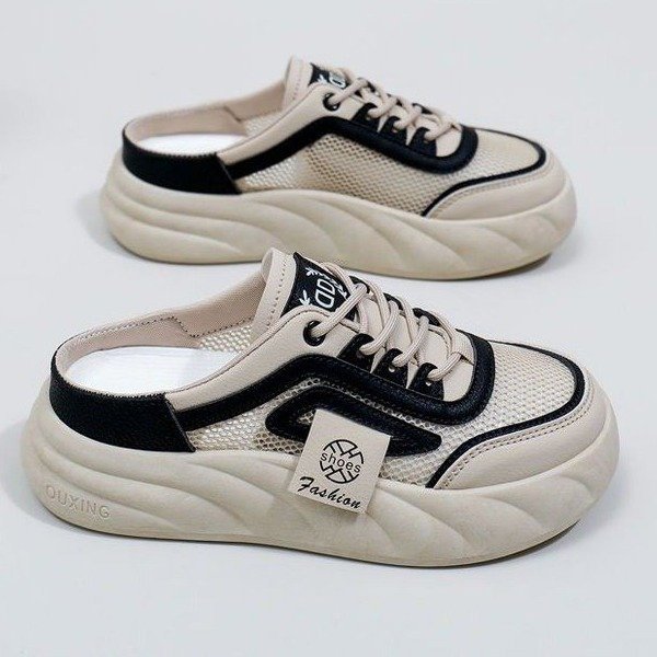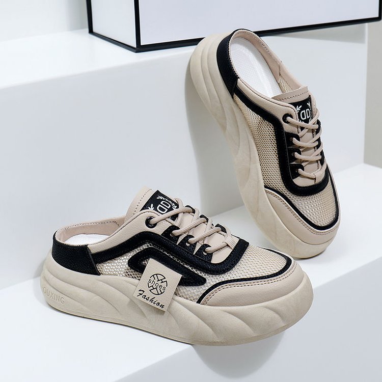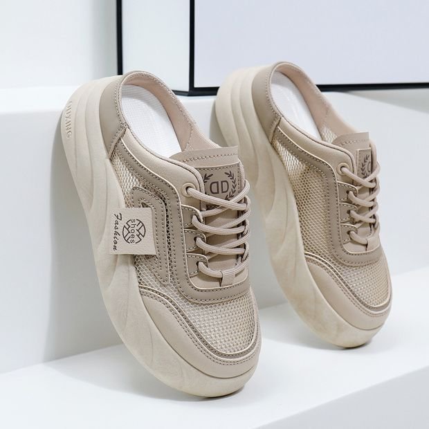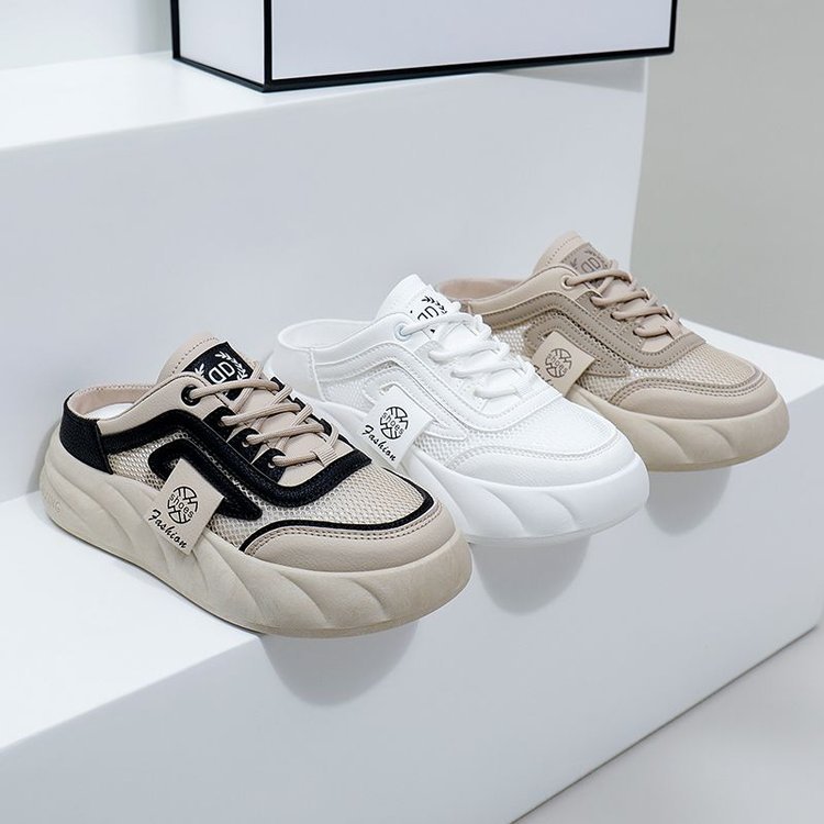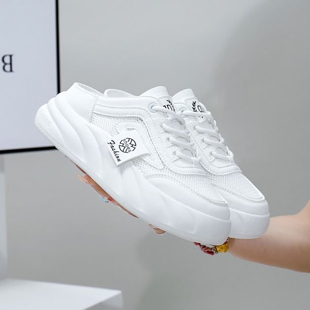 여성을위한 인기있는 흰색 신발 2025 여름 새로운 두꺼운 밑창 겉옷 굽없는 게으른 유행 샌들 여성을위한 발가락 반 슬리퍼스토어 가기