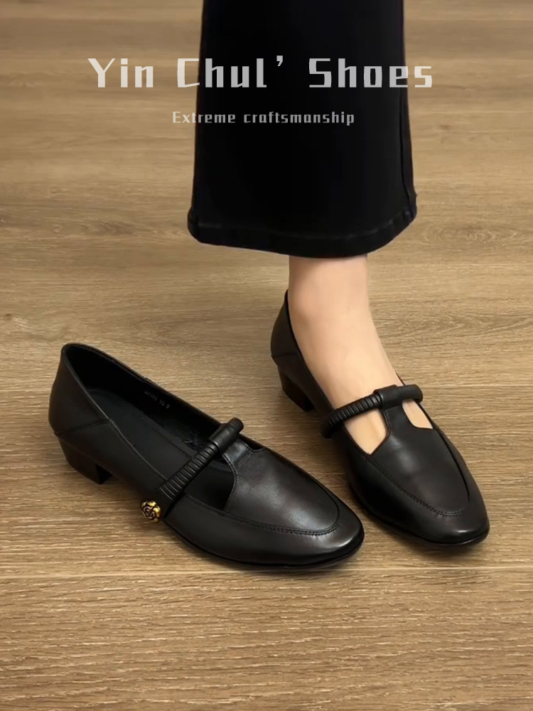 [재고 있음, 몇 초 안에 배송] 스커트와 함께 프렌치 스타일의 여성용 브레이드 T-버클 메리 제인 슈즈, 레트로 펌프스 두꺼운 힐 슈즈스토어 가기