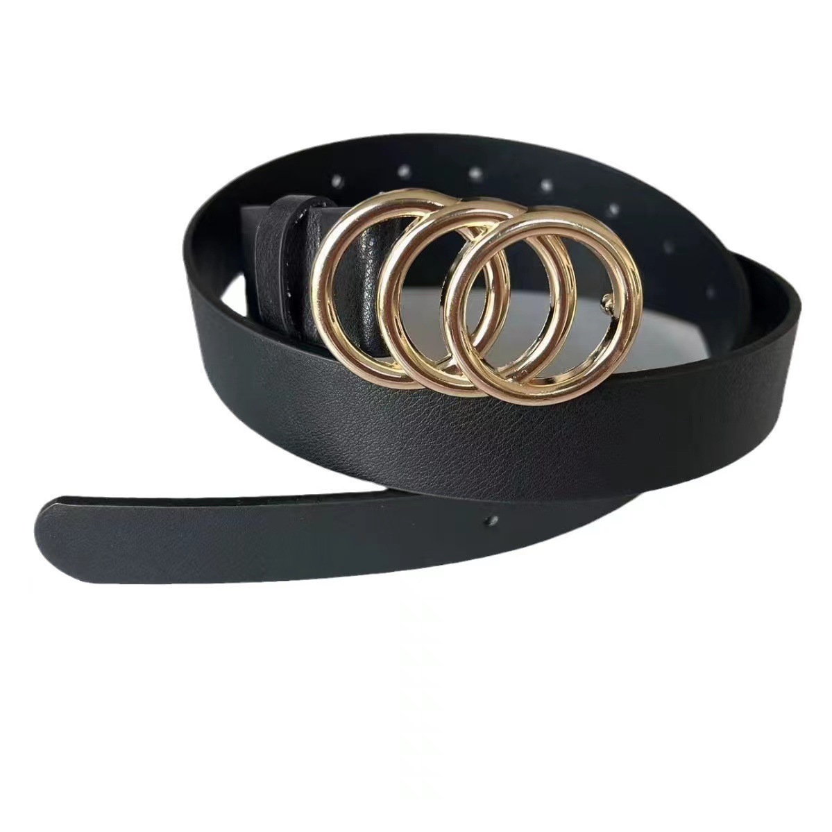 세 개의 원형 골드 합금 버클 여성용 벨트 크로스 보더 클래식 핫 세일 벨트 멀티 컬러 캐주얼 스타일 다용도 액세서리