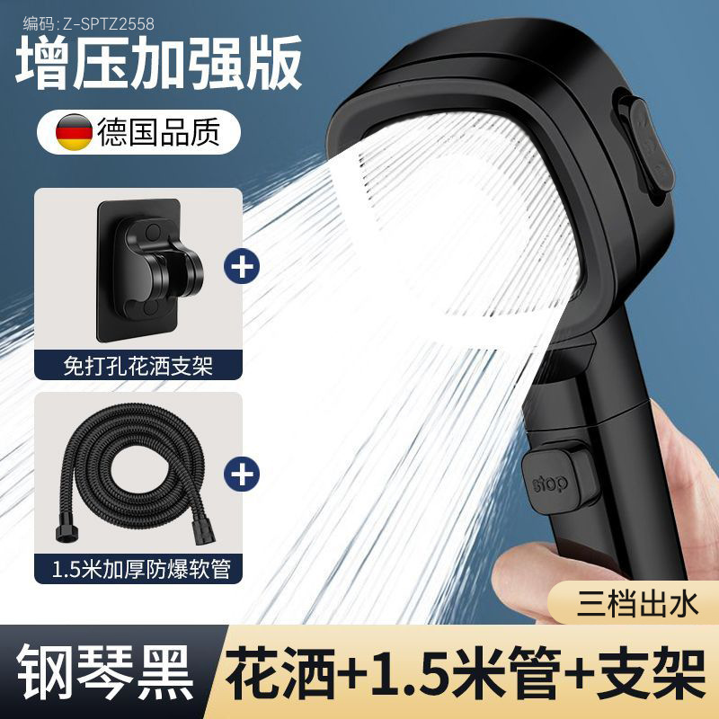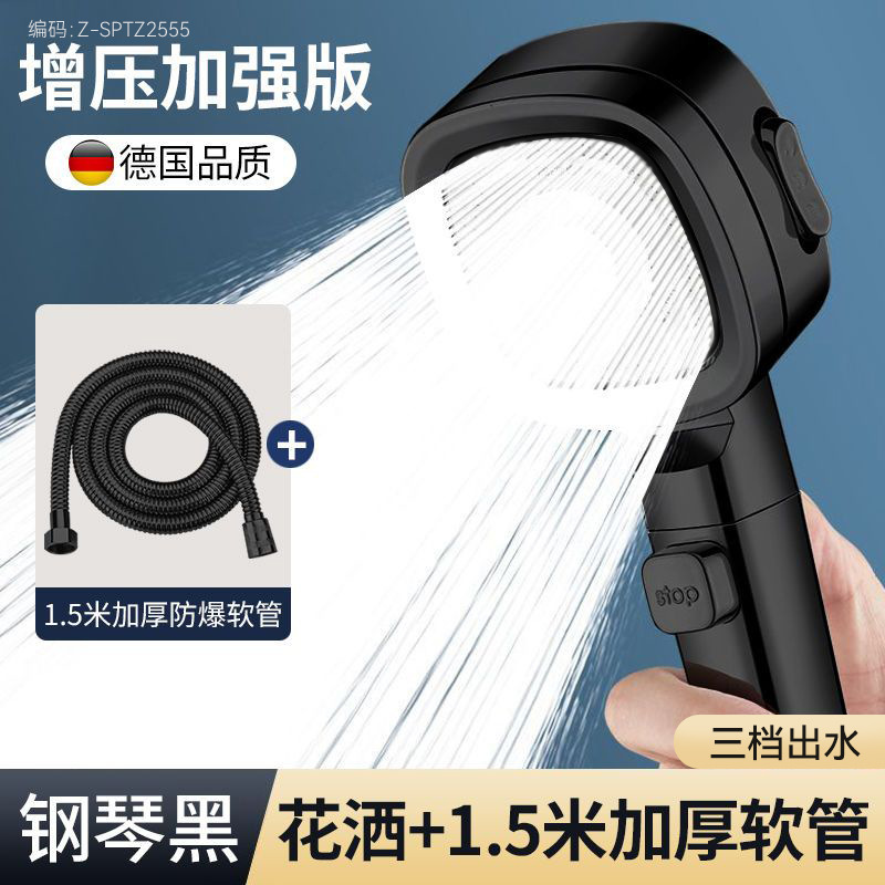 • [블랙] 3단 필터 핸드 스프레이 + [1.5M] 두꺼운 샤워 파이프