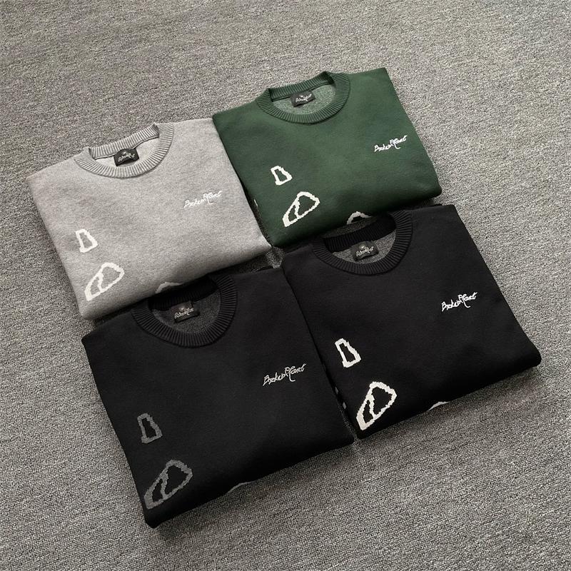 Broken Planet 플래닛 자카드 자수 로고 스웨터 아메리칸 스트리트 남성 및 여성 캐주얼 크루넥 스웨터