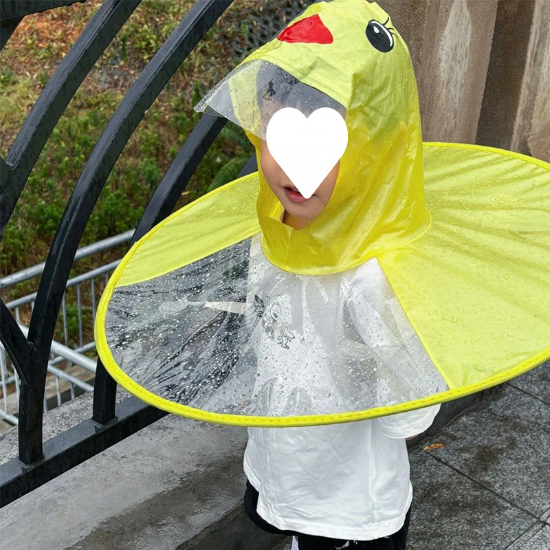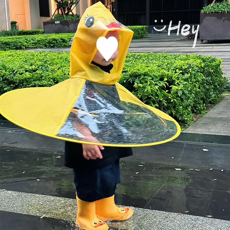 작은 노란색 오리 UFO 비옷 어린이 망토 우산 모자 만화 유치원 아기 우산 소녀를위한 결합 된 비옷스토어 가기
