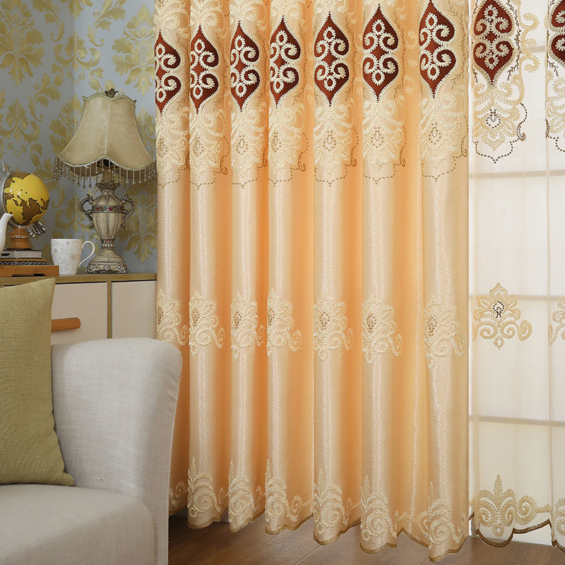 커튼, 암막, 바닥 창문, 유럽식 자수 완제품 커튼, 침실, 거실, 발코니, 돌출창, 창문 스크린, 독립 스테이션