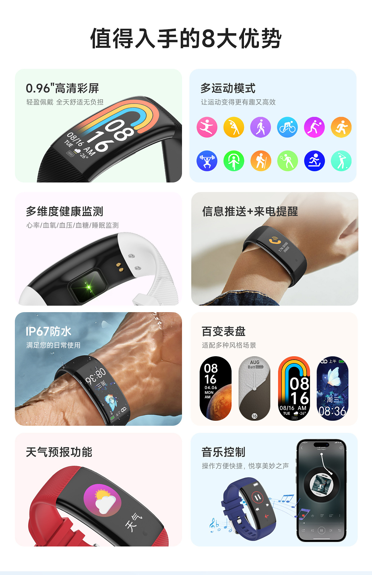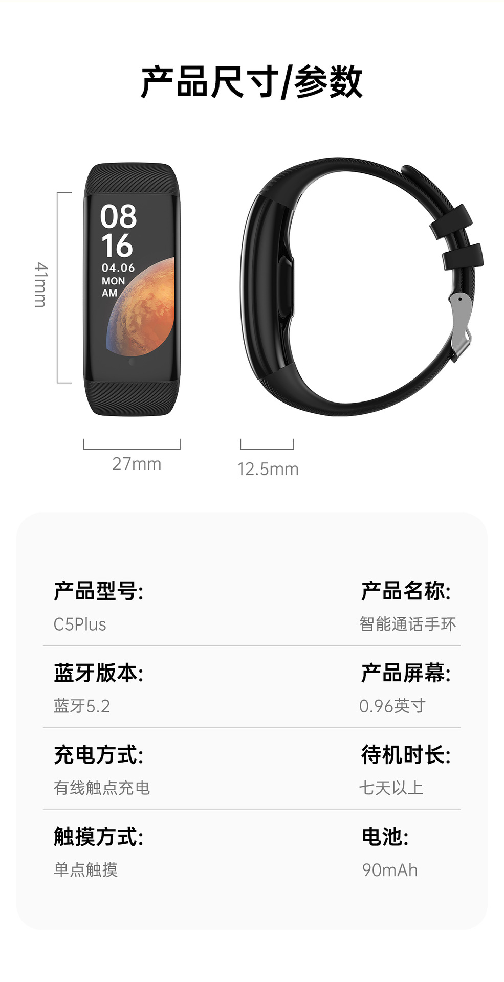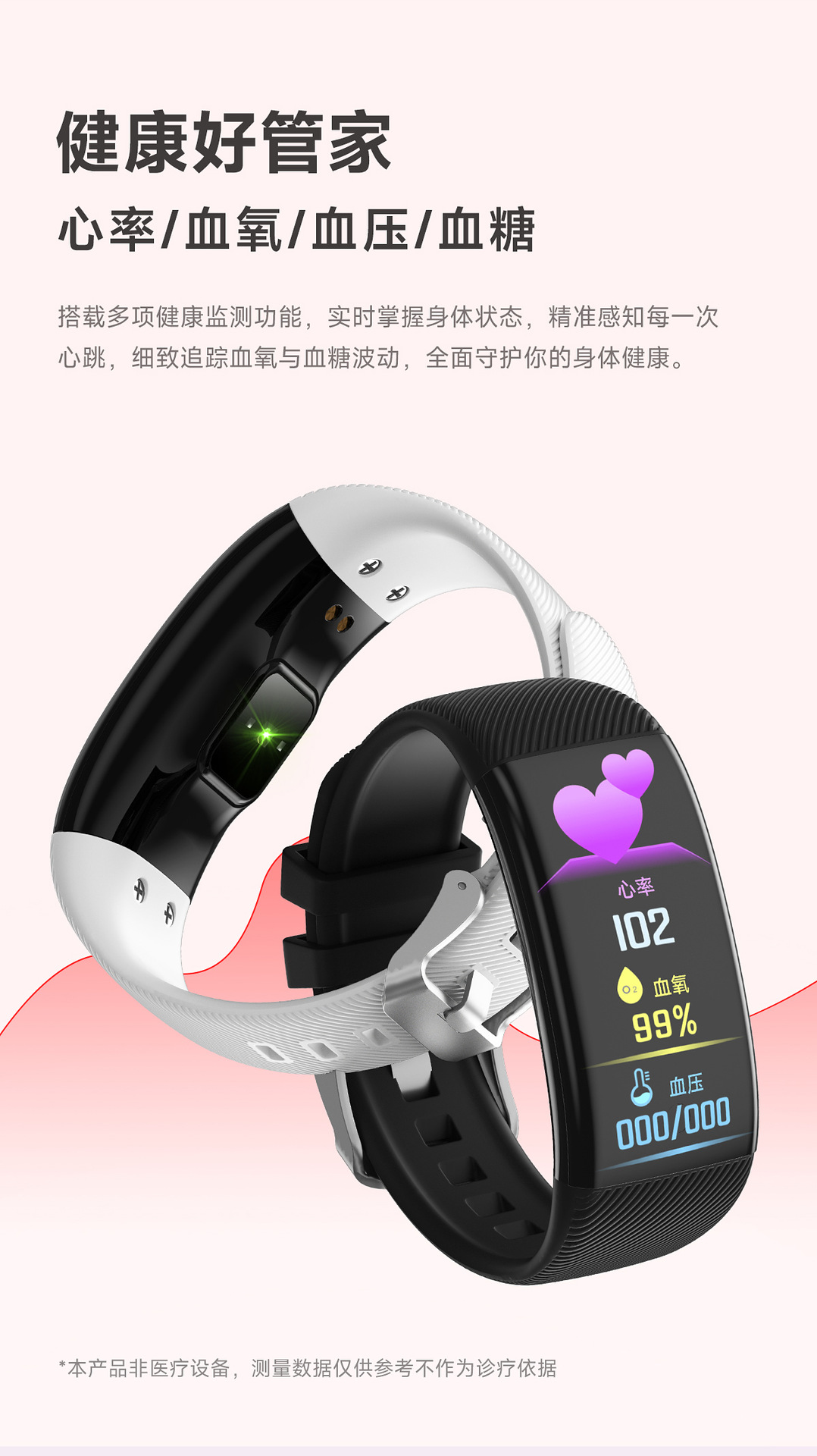 스마트 팔찌 C5Plus 컬러 스크린 방수 수면 심박수 혈당 모니터링 단계 스포츠 건강 블루투스 팔찌