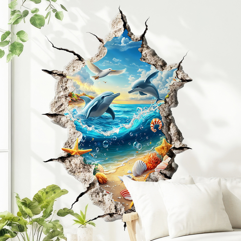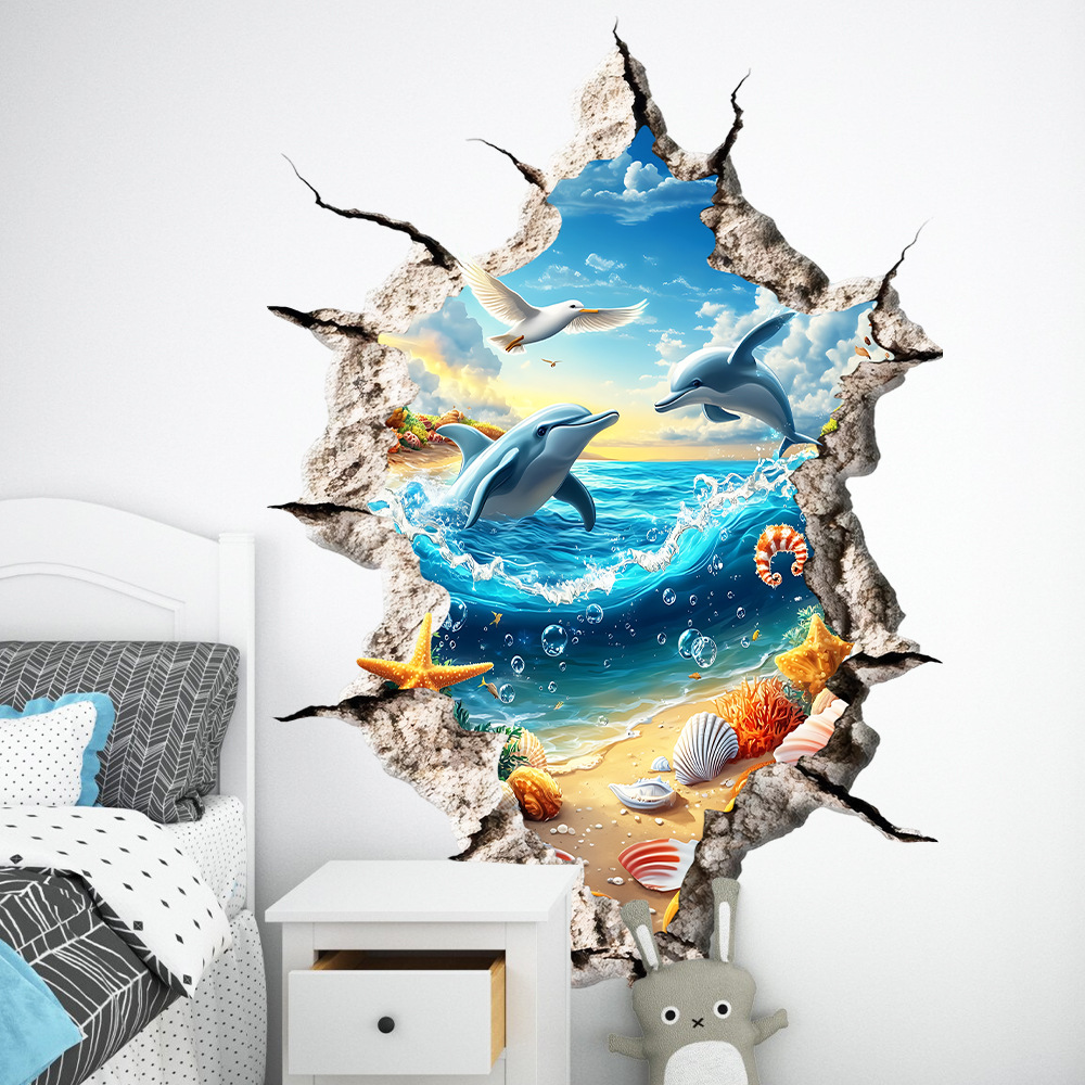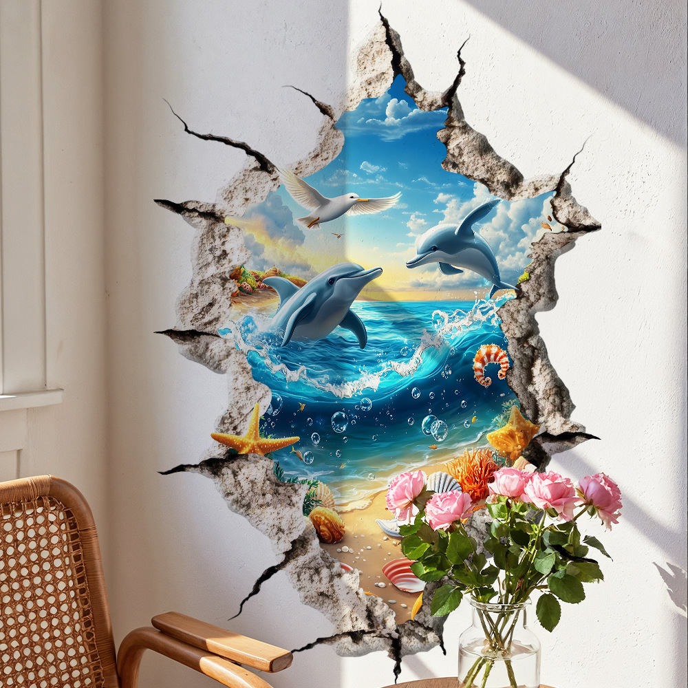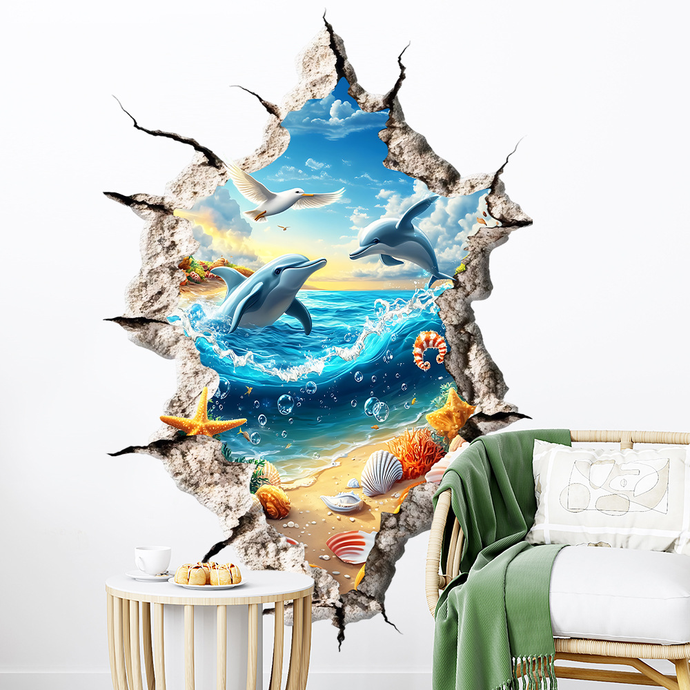 Yiyao DD4638 새로운 분위기 해변 돌고래 장식 스티커 벽 스티커 벽 미화 장식 자체 접착 종이