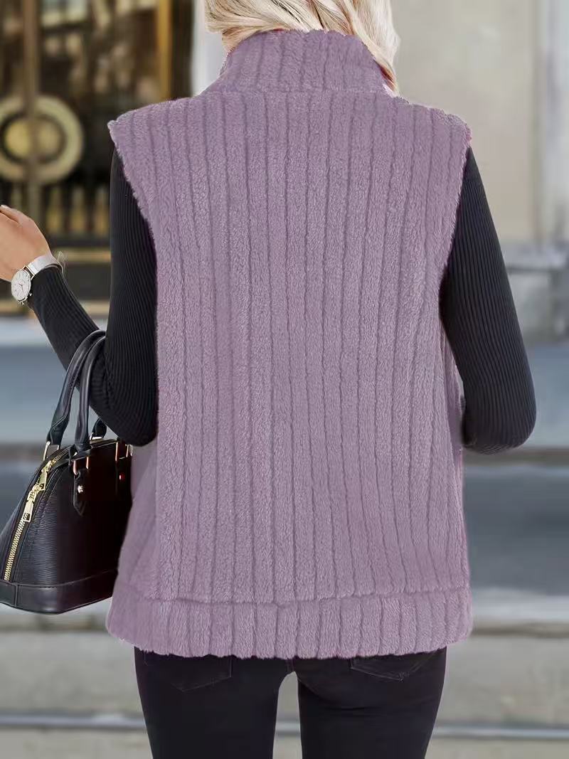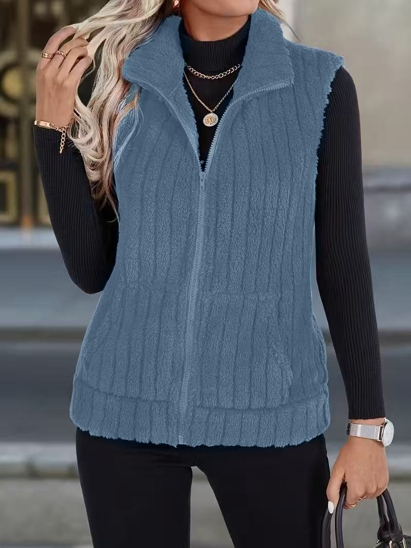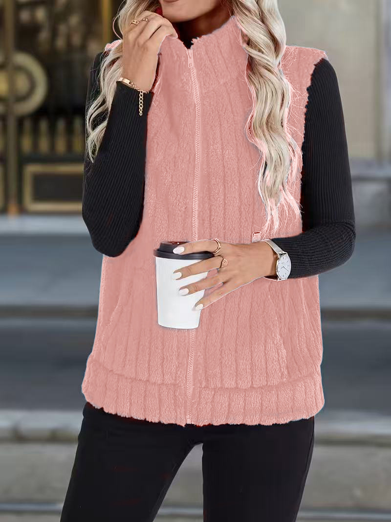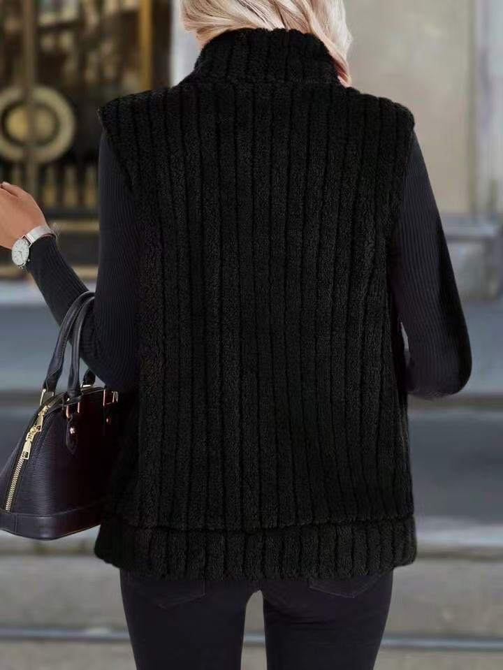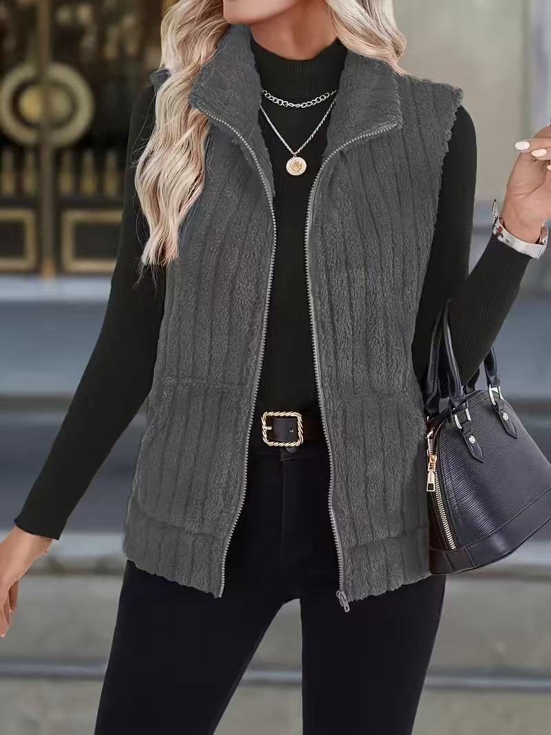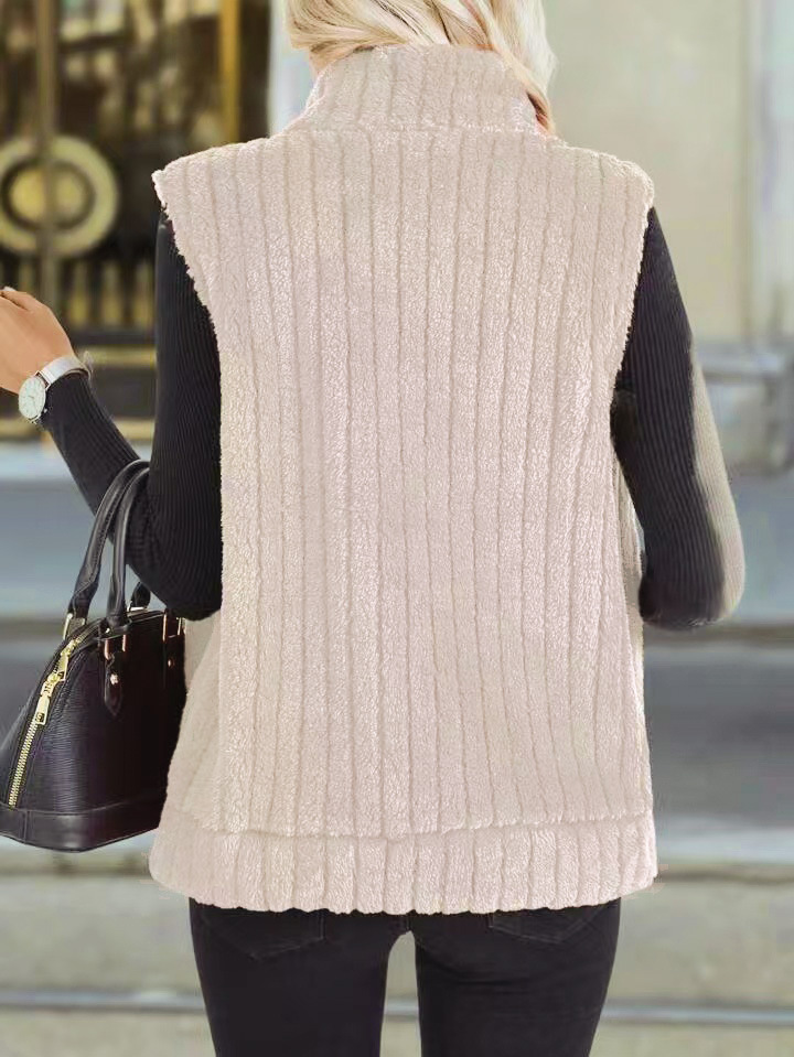 유럽과 미국의 국경 간 인기 단색 양면 플러시 지퍼 카디건 캐주얼 여성 가을, 겨울 조끼 독립 스테이션 AliExpress