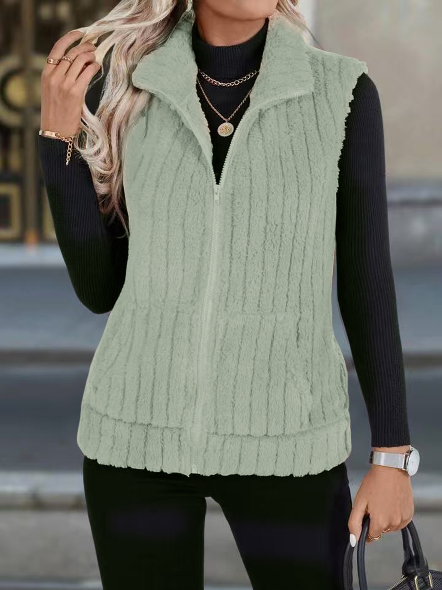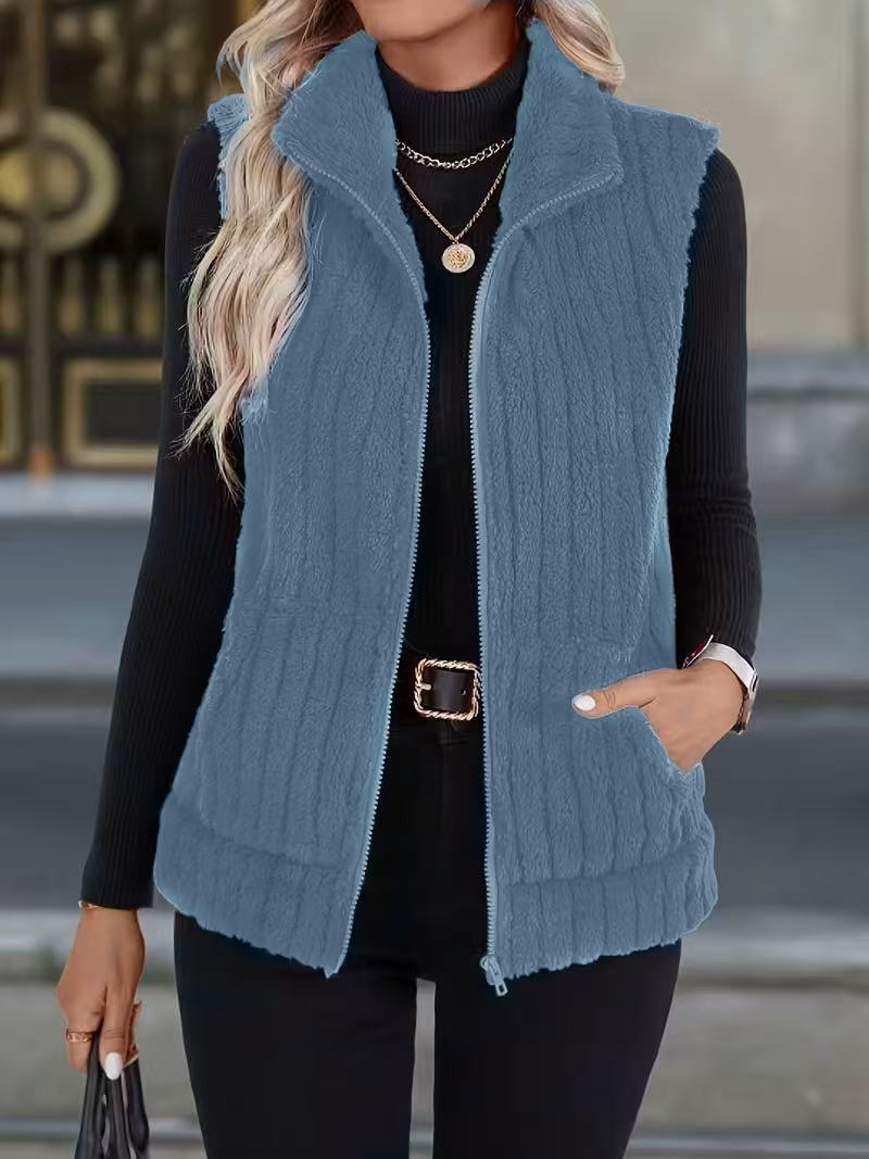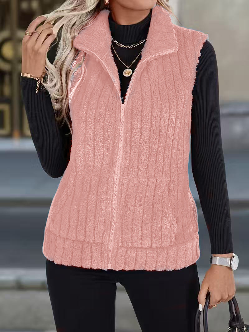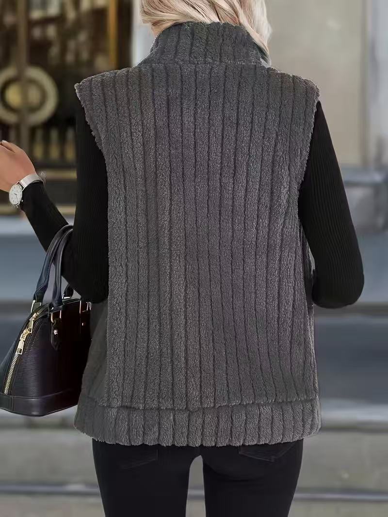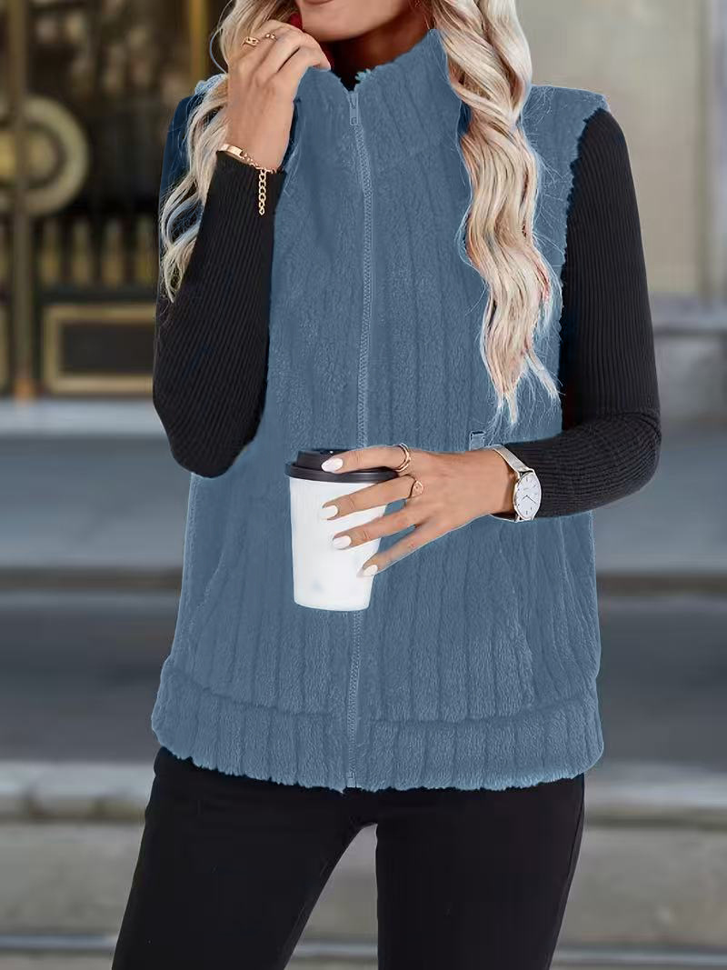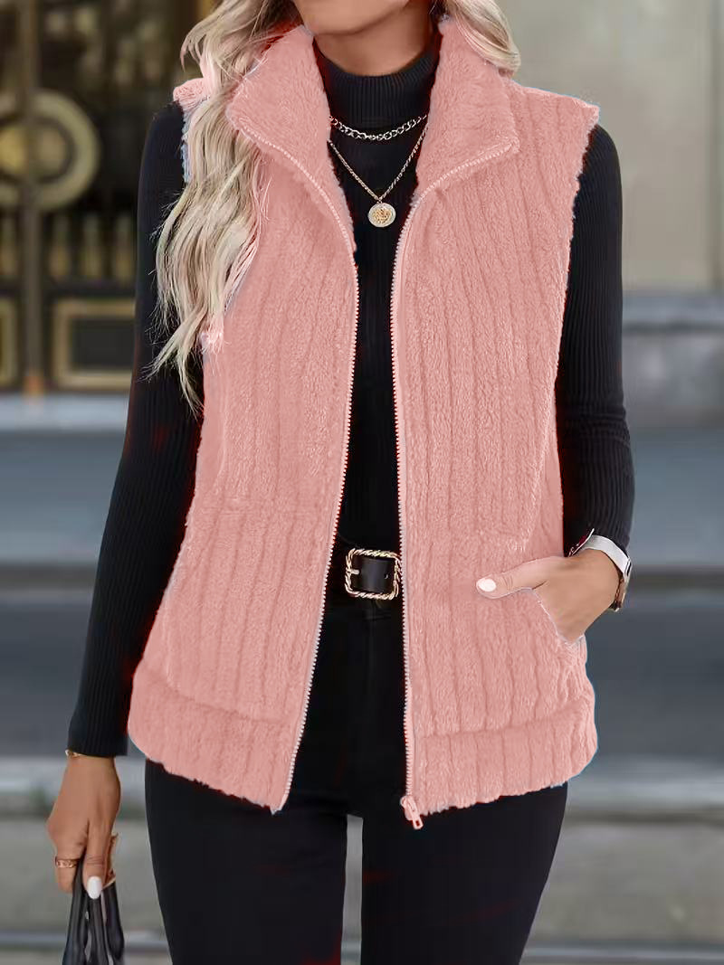 유럽과 미국의 국경 간 인기 단색 양면 플러시 지퍼 카디건 캐주얼 여성 가을, 겨울 조끼 독립 스테이션 AliExpress
