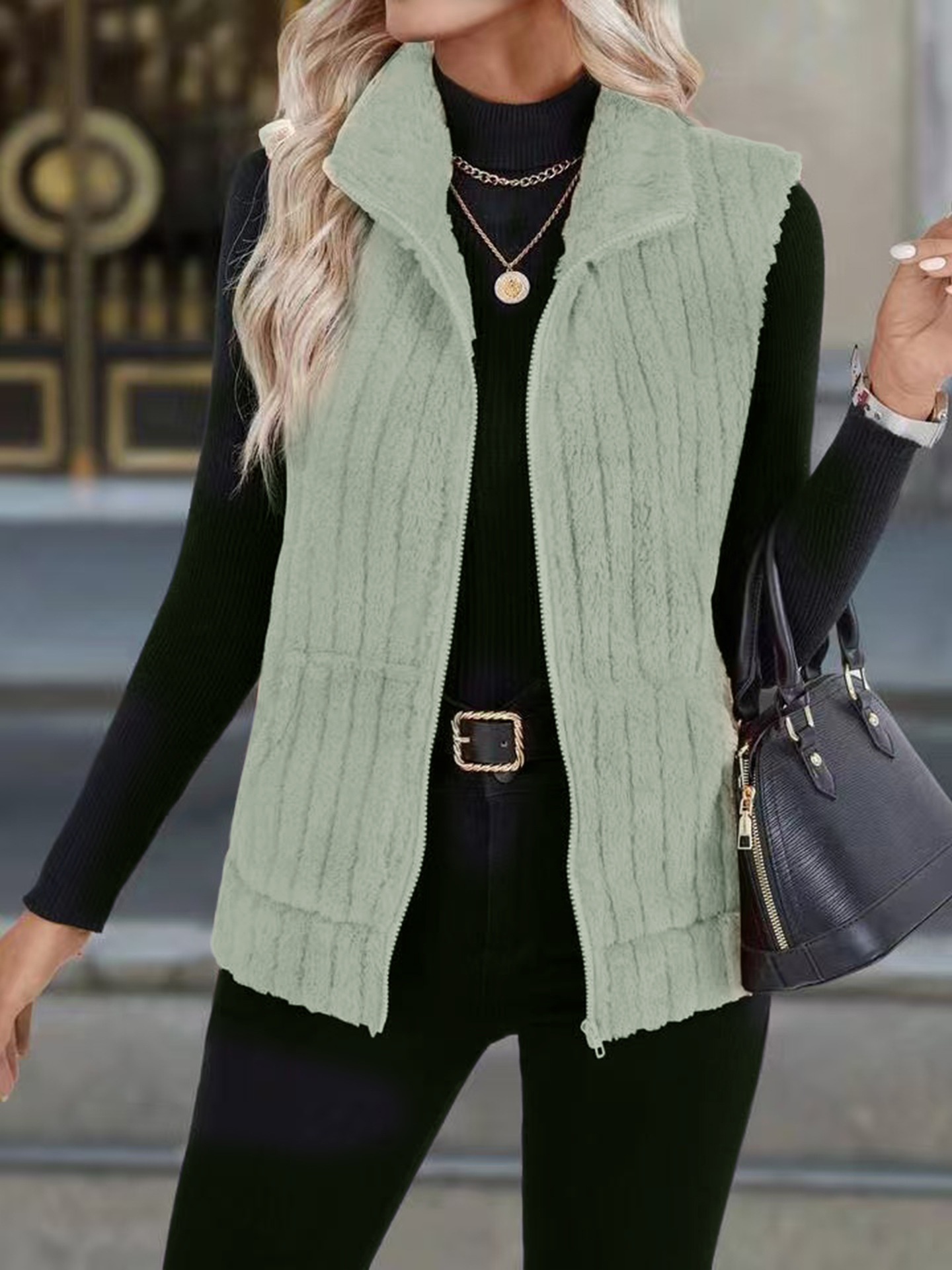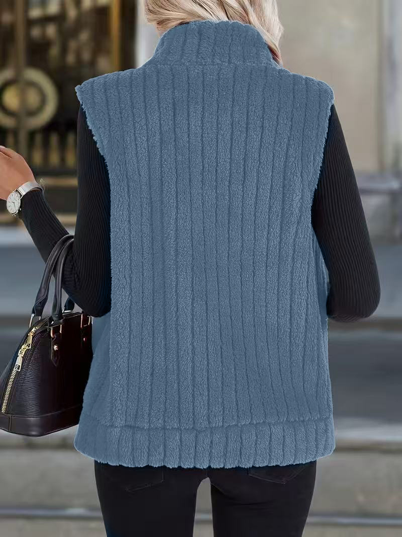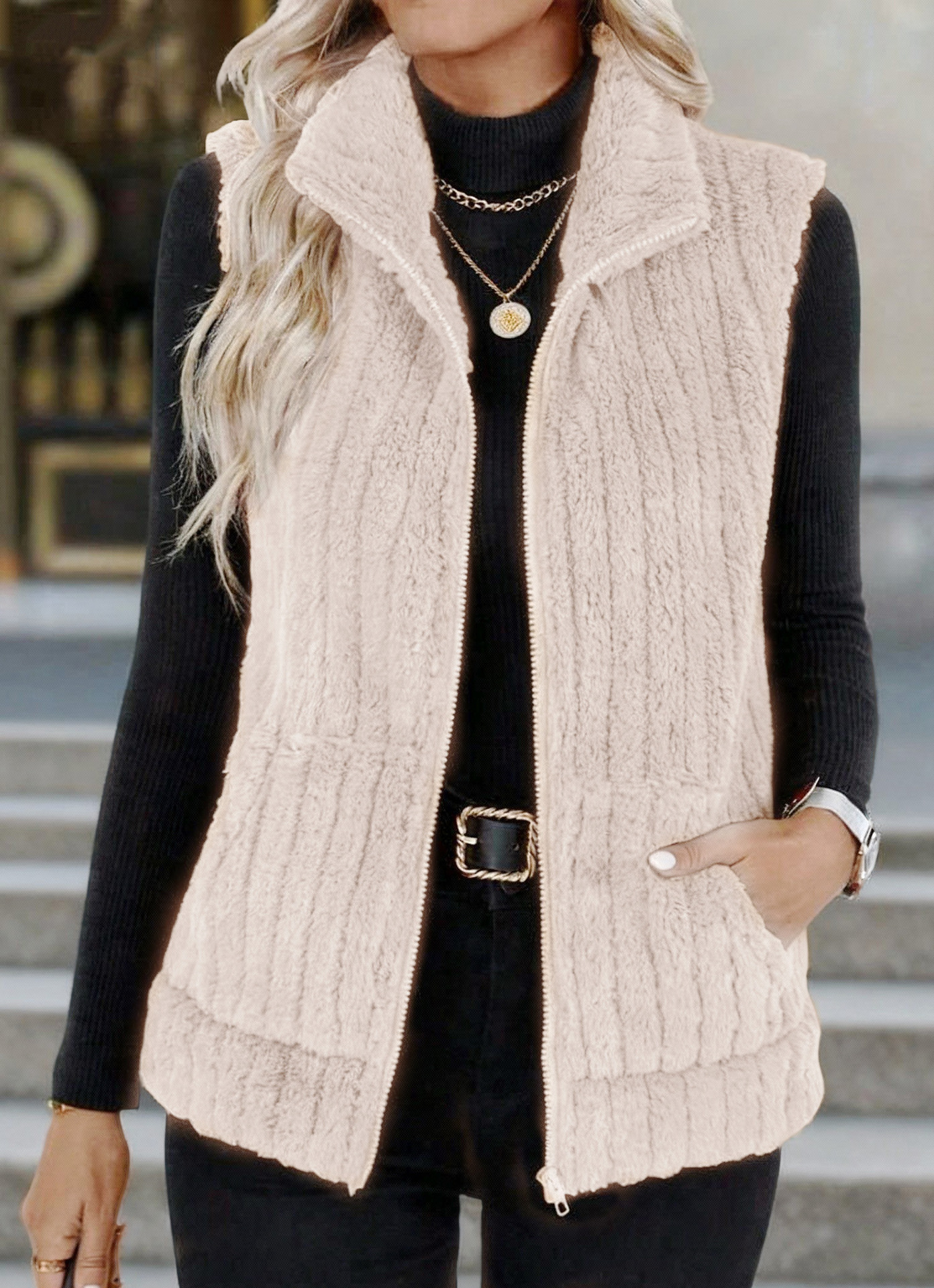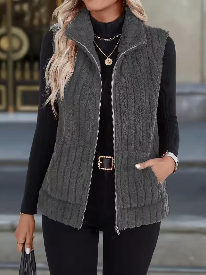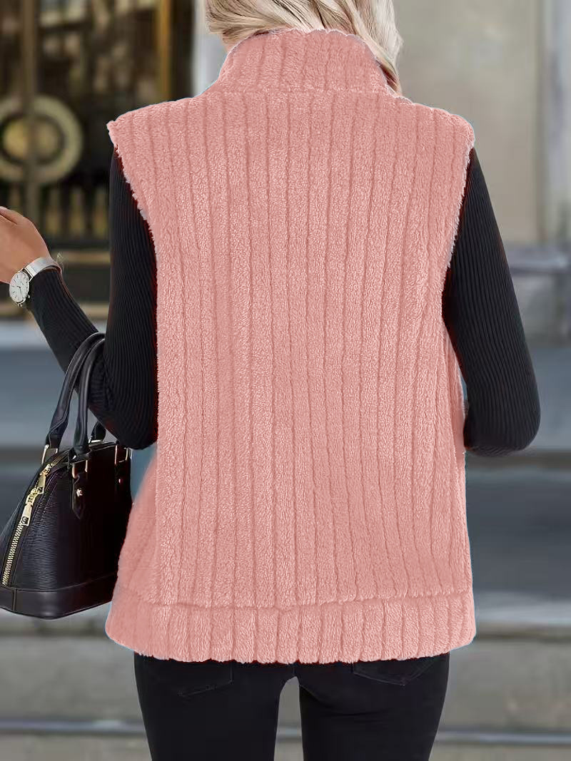 유럽과 미국의 국경 간 인기 단색 양면 플러시 지퍼 카디건 캐주얼 여성 가을, 겨울 조끼 독립 스테이션 AliExpress