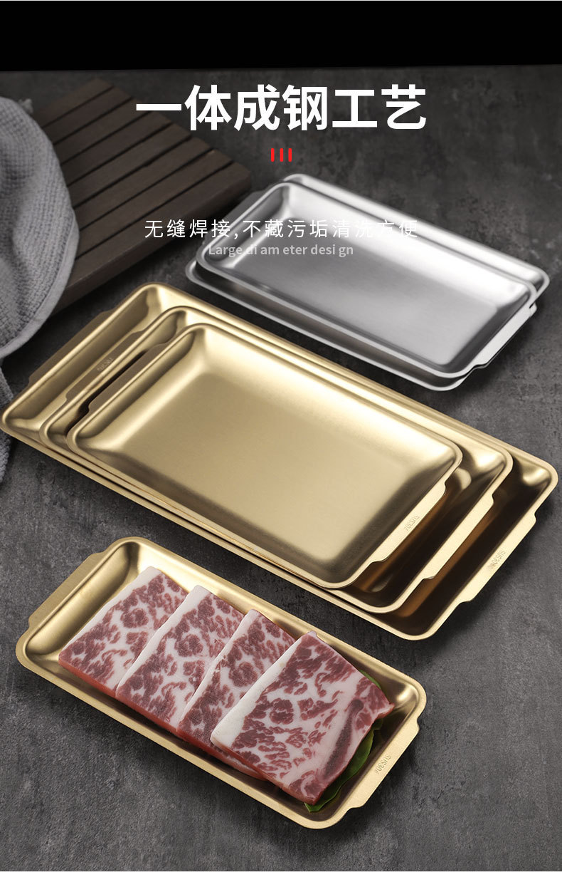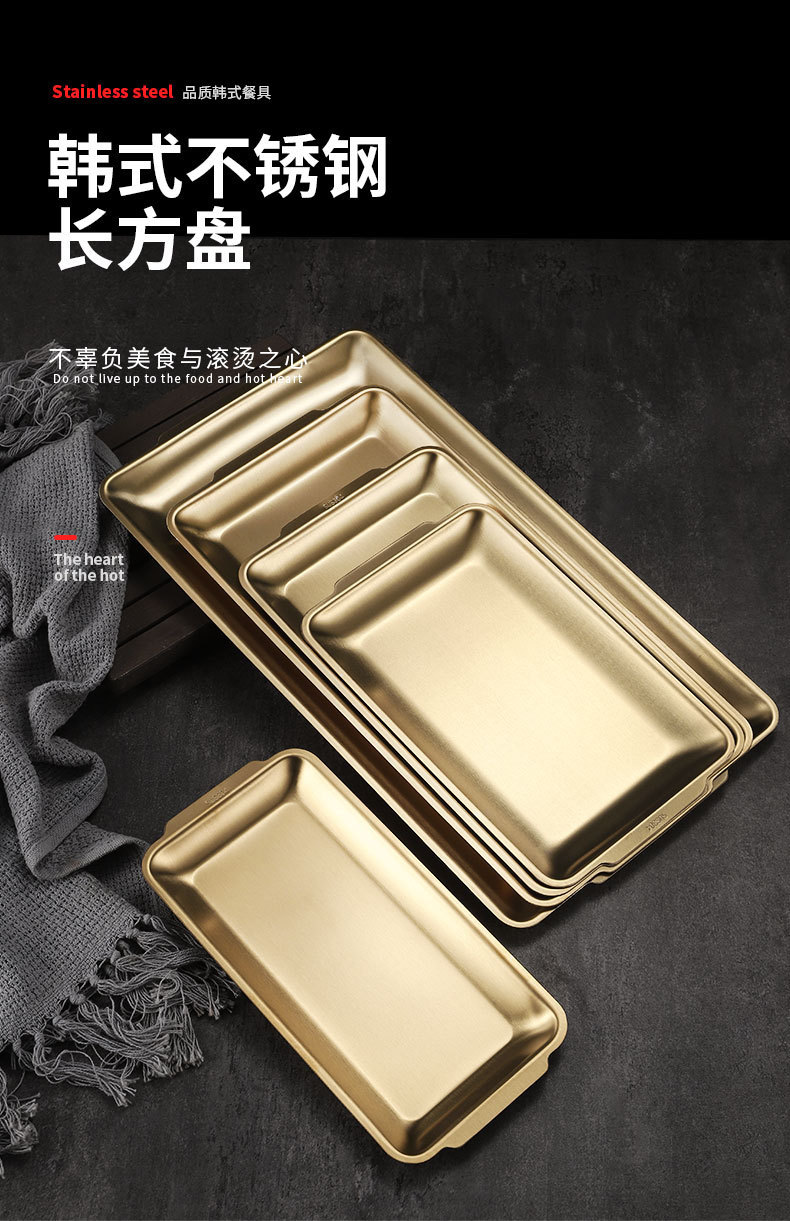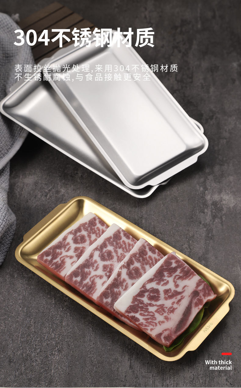 304 스테인레스 스틸 한국식 바베큐 접시 사각형 접시 바베큐 접시 두꺼운 접시 직사각형 접시 접시 가정용 평면 트레이스토어 가기