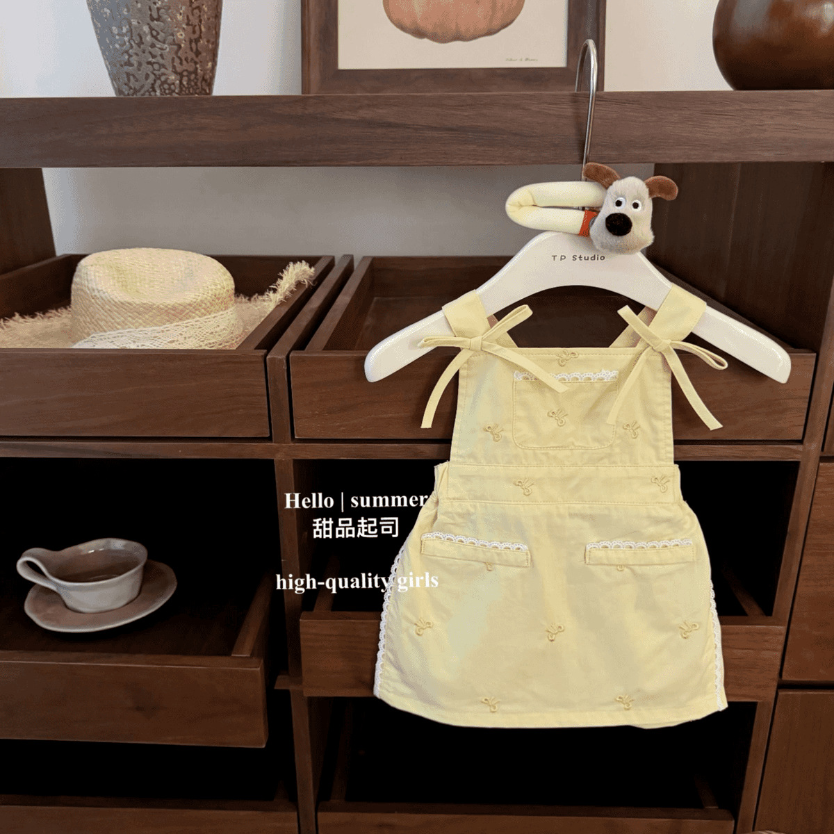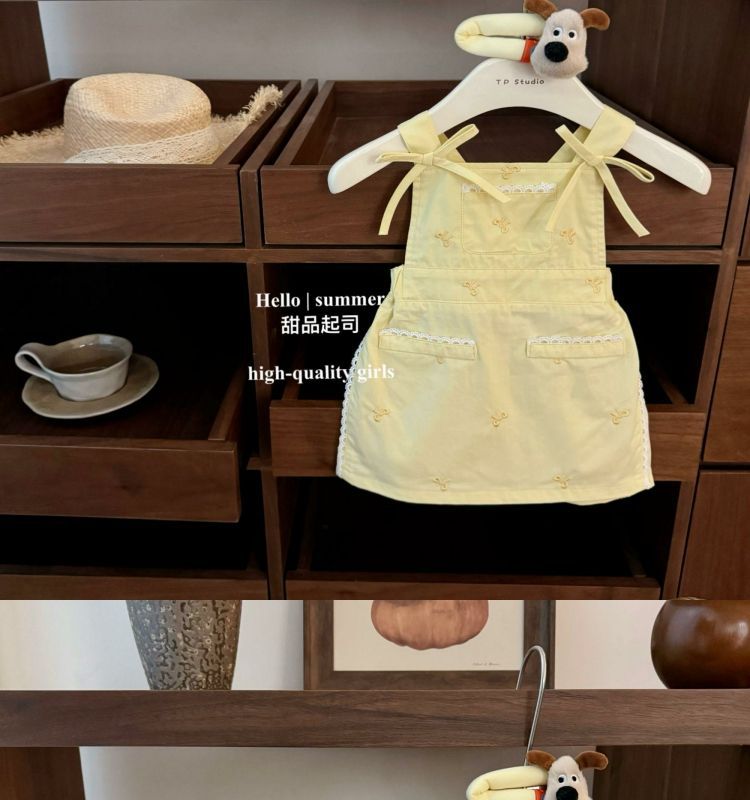 • 옐로우 서스펜더 스커트 + 보우 T