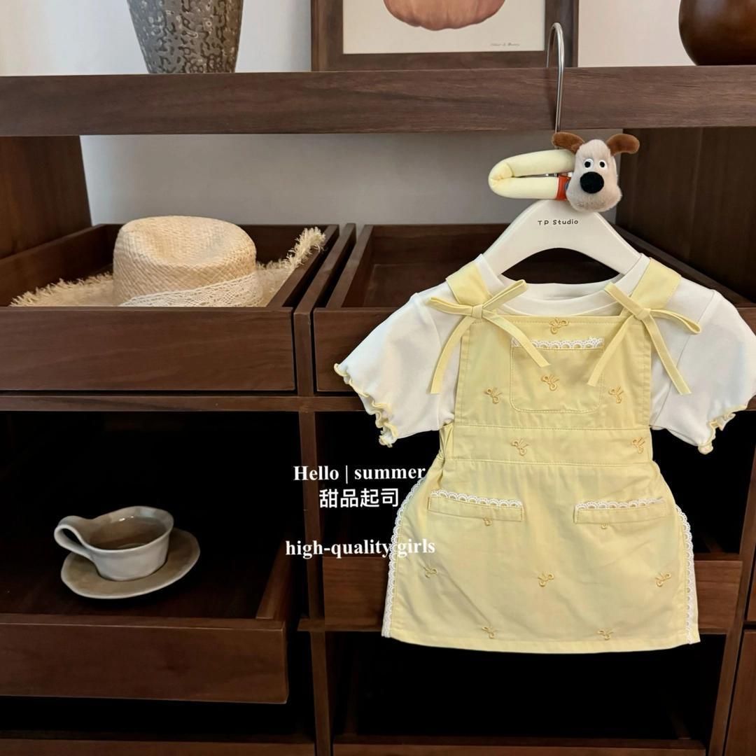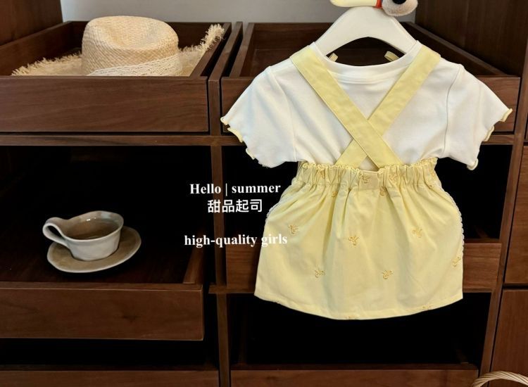 여아 정장 2025 새로운 여름 서스펜더 스커트 티셔츠 세련된 중소형 여아 투피스 세트 패셔너블하고 캐주얼