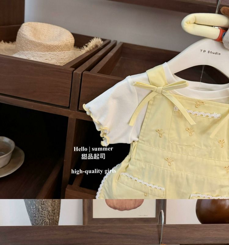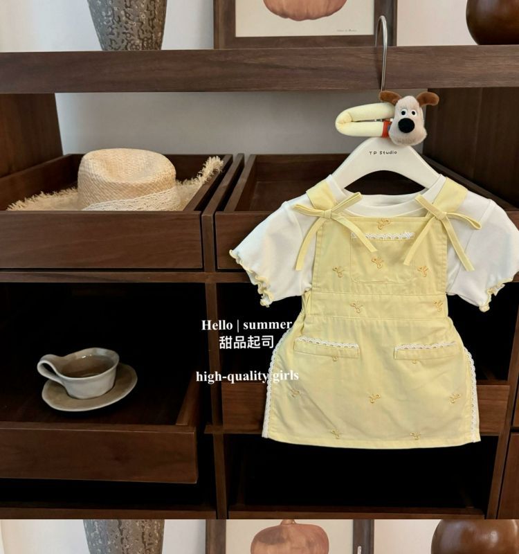 여아 정장 2025 새로운 여름 서스펜더 스커트 티셔츠 세련된 중소형 여아 투피스 세트 패셔너블하고 캐주얼스토어 가기
