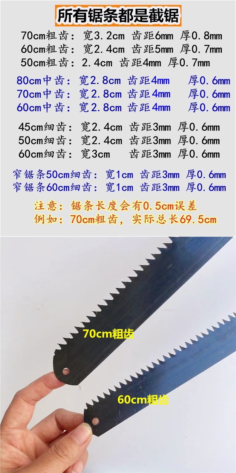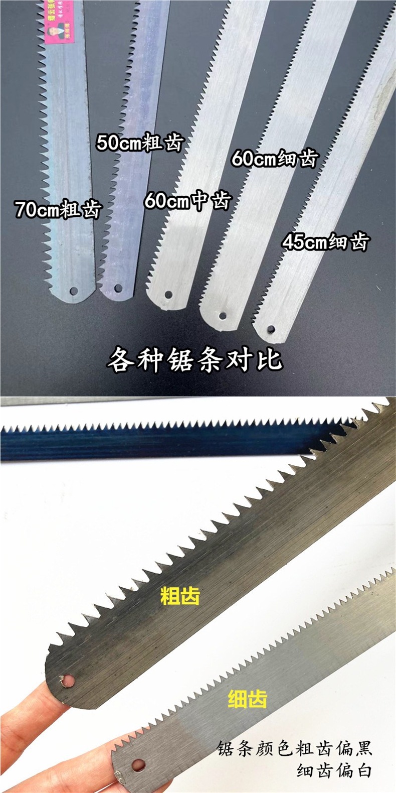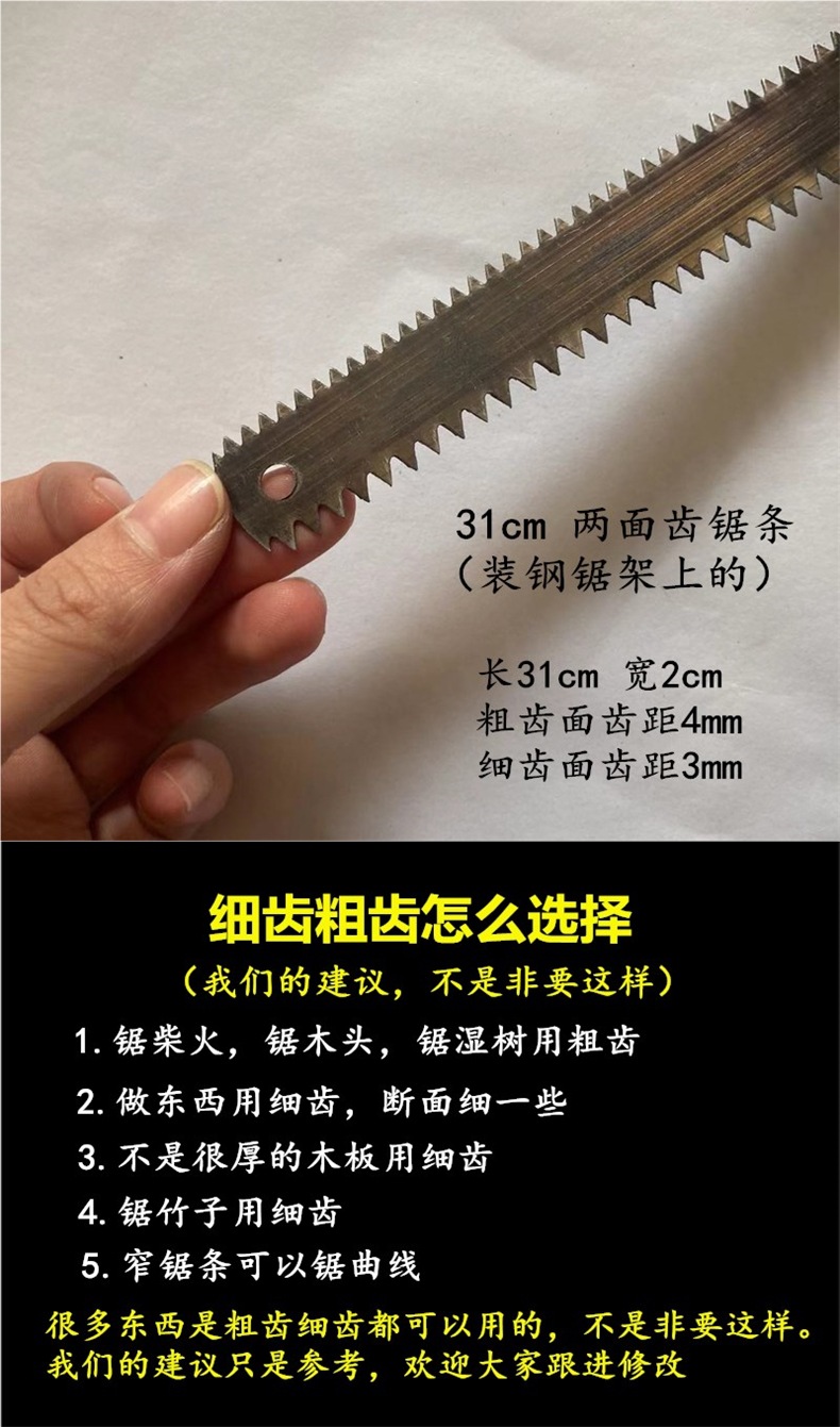 목공 톱날, 망간강, 굵은 이빨, 가는 이빨, 좁은 톱날, 와이어 톱날, 수제 톱 버튼 50cm60cm70cm