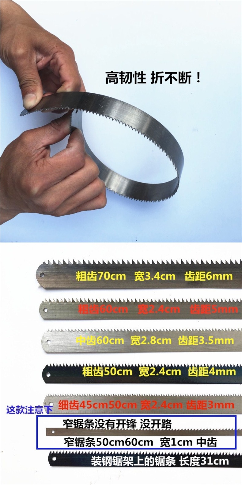 목공 톱날, 망간강, 굵은 이빨, 가는 이빨, 좁은 톱날, 와이어 톱날, 수제 톱 버튼 50cm60cm70cm스토어 가기