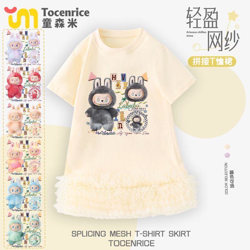 Labubu 3세대 모든 인형 컬렉션 소녀 드레스 2025 여름 어린이 메쉬 Labubu 공주 스커트스토어 가기