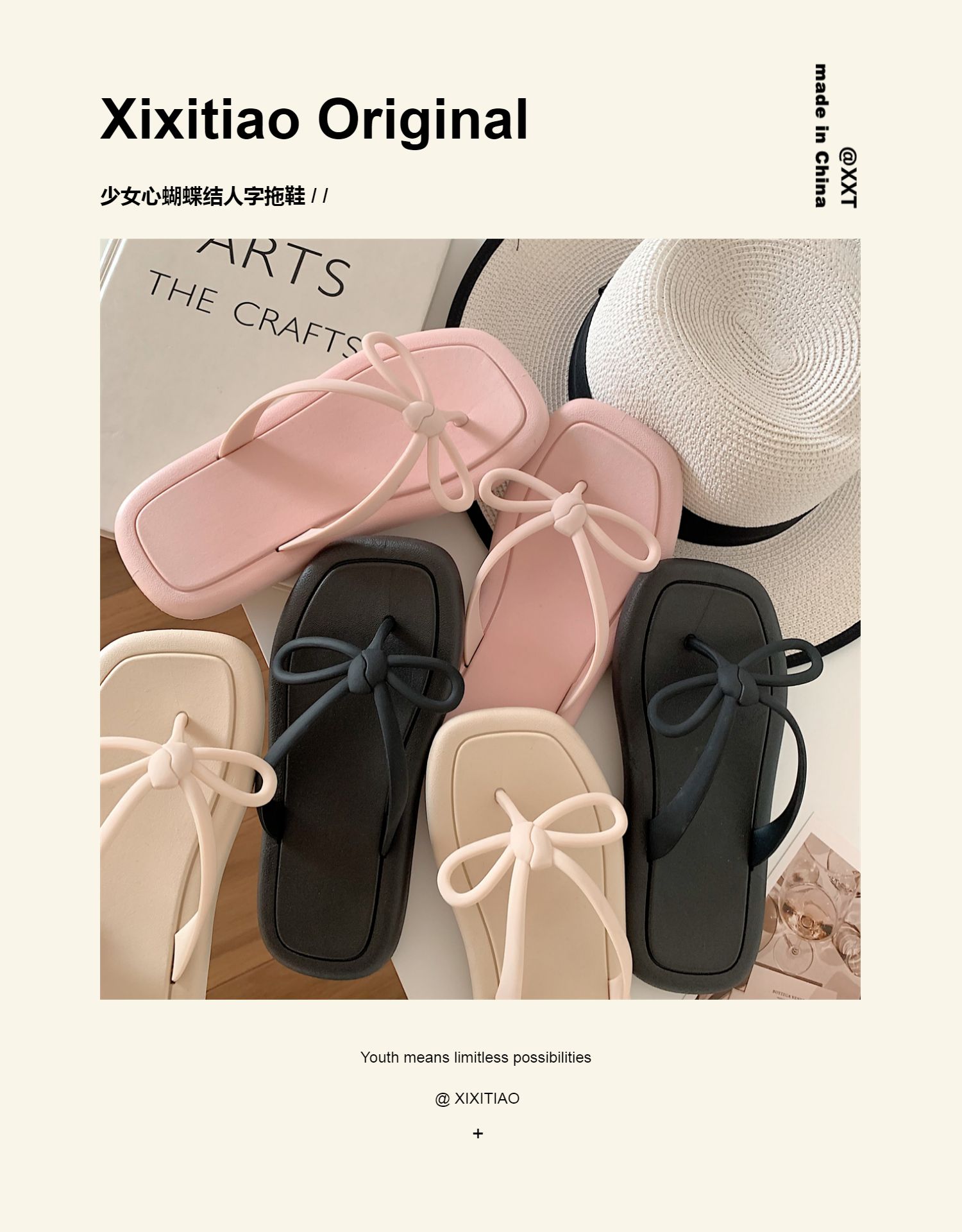 여름 소녀들을 위한 요정 스타일 나비 매듭 플립 플롭, 해변용 미끄럼 방지 부드러운 바닥 비치 플립 플롭스토어 가기