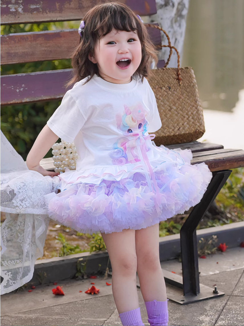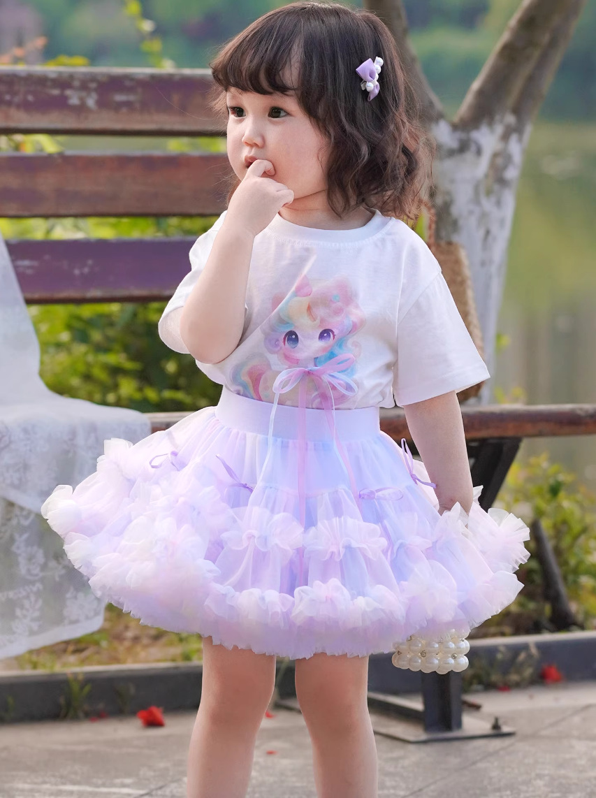 여아용 리본 튜튜 케이크 스커트 도파민 어린이날 공연 스커트 공주 퍼프 스커트 달콤한 스타일