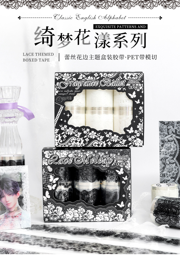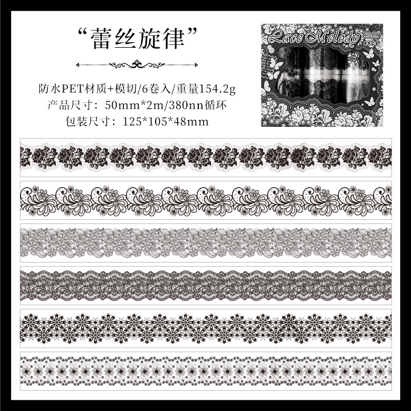 Qimeng Huayang 시리즈 레이스 테마 애완 동물 핸드북 박스형 테이프 diy 핸드북 재료 일기 장식