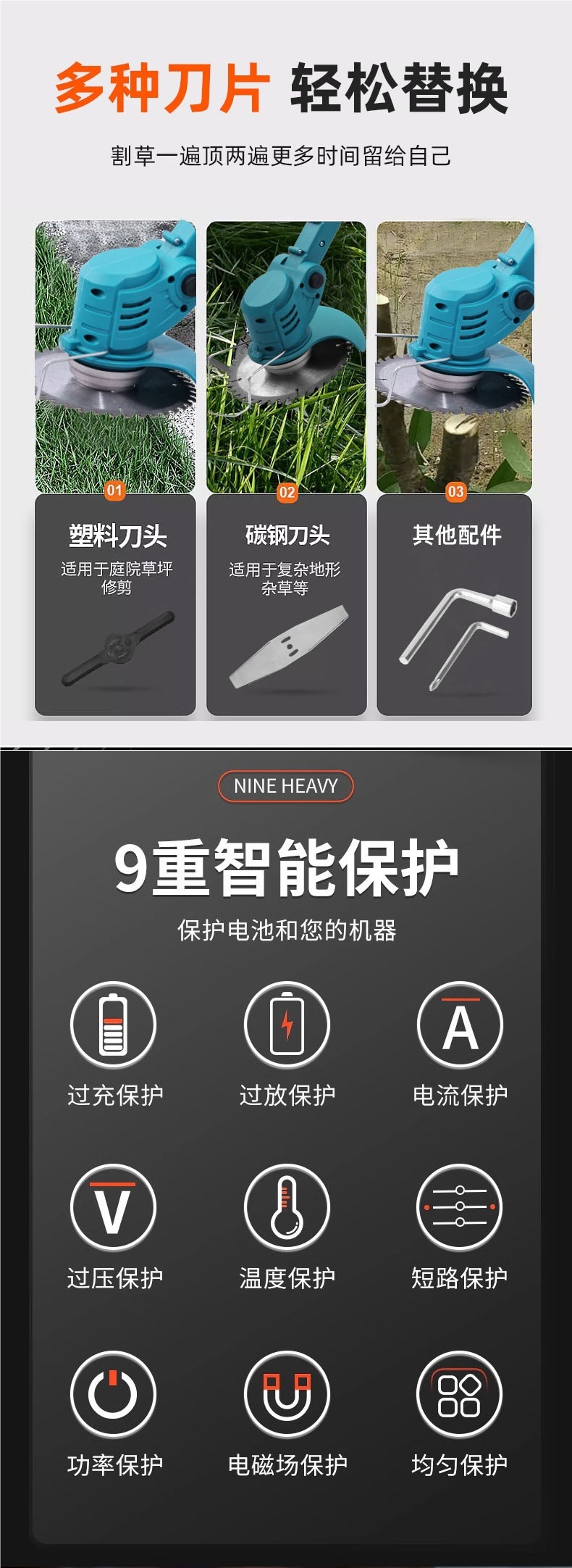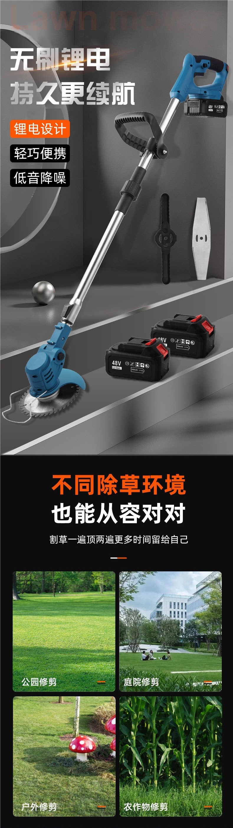국경 간 전기 잔디 깎는 기계, 소형 가정용 잔디 깎는 기계, 충전식 리튬 다기능 잔디 깎는 기계