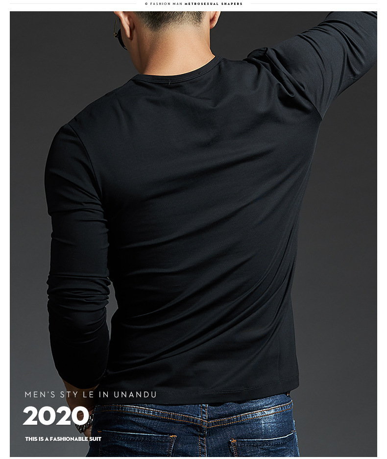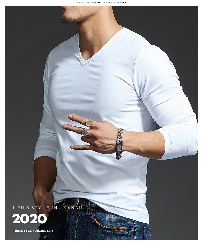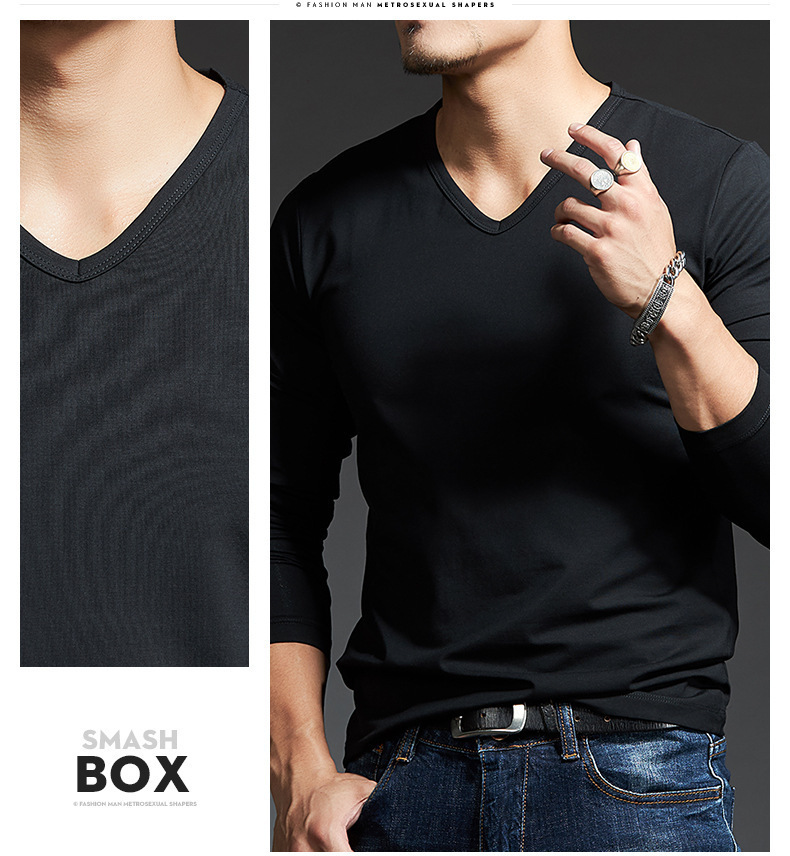 도매 v 넥 긴팔 티셔츠 남성용 짙은 회색 슬림 피트 셔츠 타이트 이너웨어 풀오버 트렌디 가을 탑 크로스보더스토어 가기