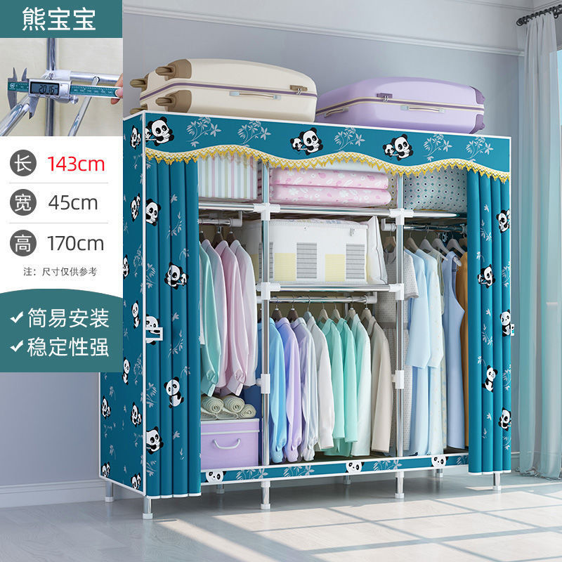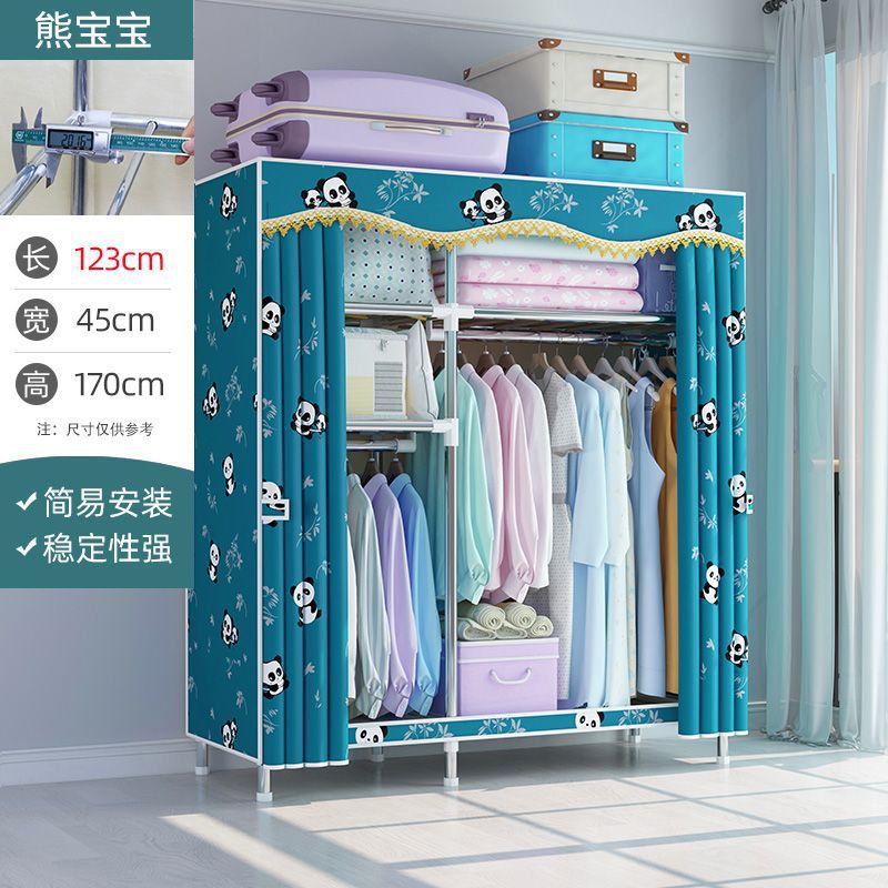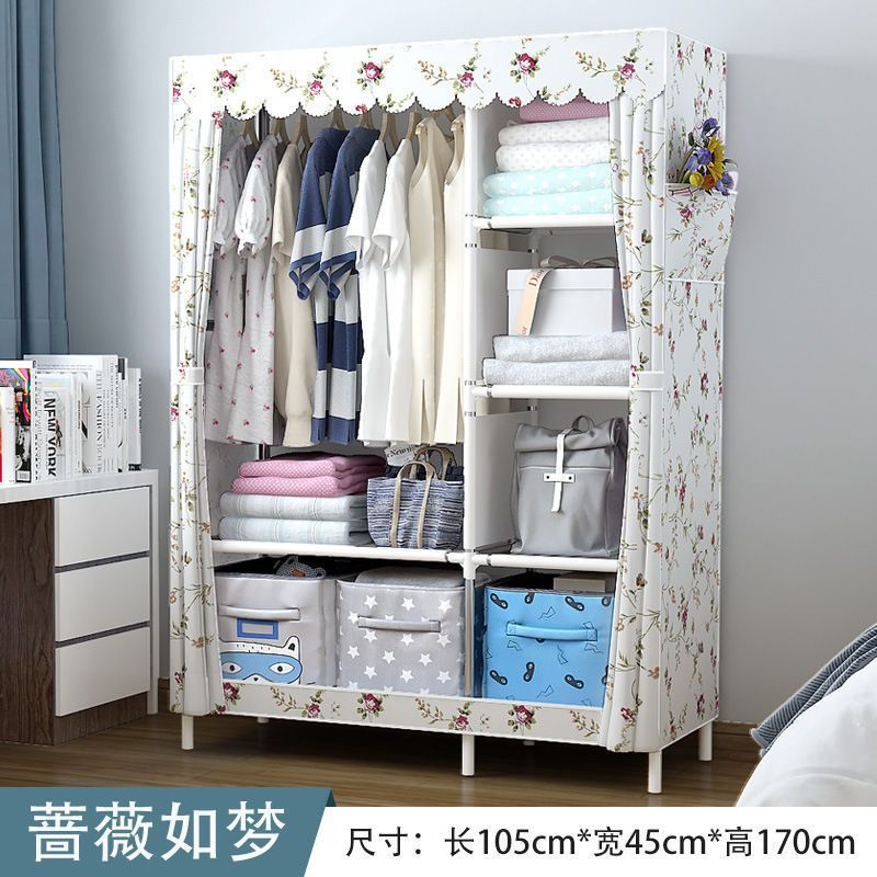 간단한 옷장 패브릭 강철 파이프 두꺼운 강화 천 옷장 간단한 현대 경제적 인 조립 옷장 신장 무료 배송스토어 가기