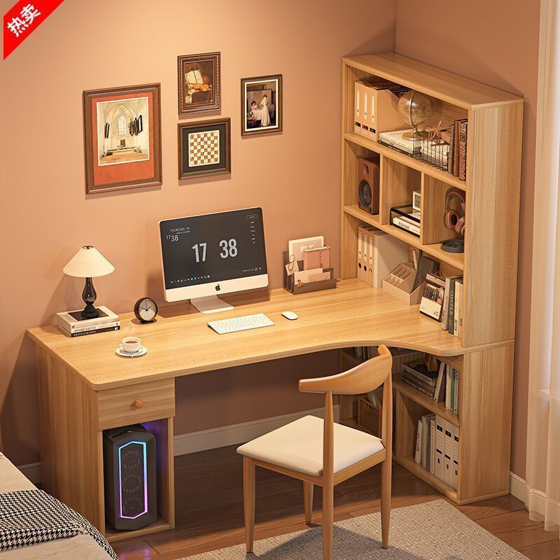 코너 책상과 책장 일체형 침실 컴퓨터 책상과 책장 조합 쓰기 간단한 학생 홈 데스크탑 테이블 공장스토어 가기