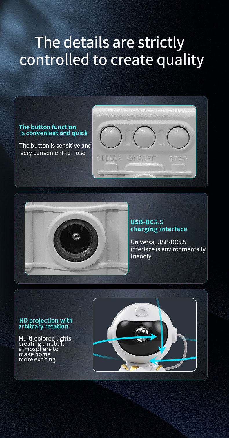 우주비행사 별빛 프로젝터, 밝기 조절 가능한 어린이 침실 분위기 조명, 환상적인 별이 빛나는 침대 옆 장식품, 야간 조명