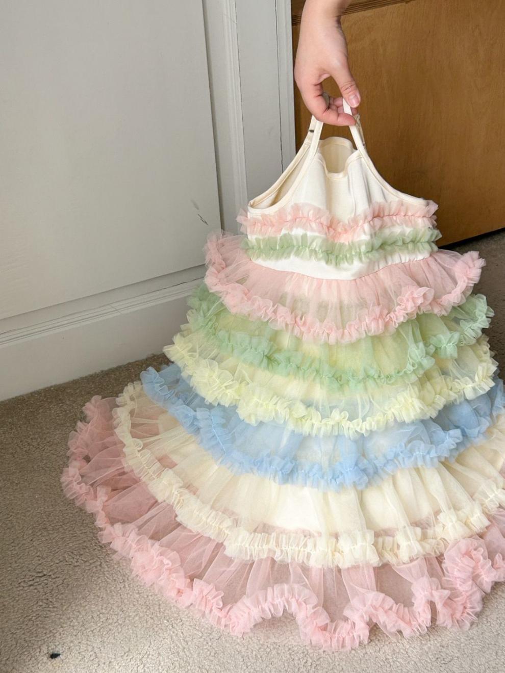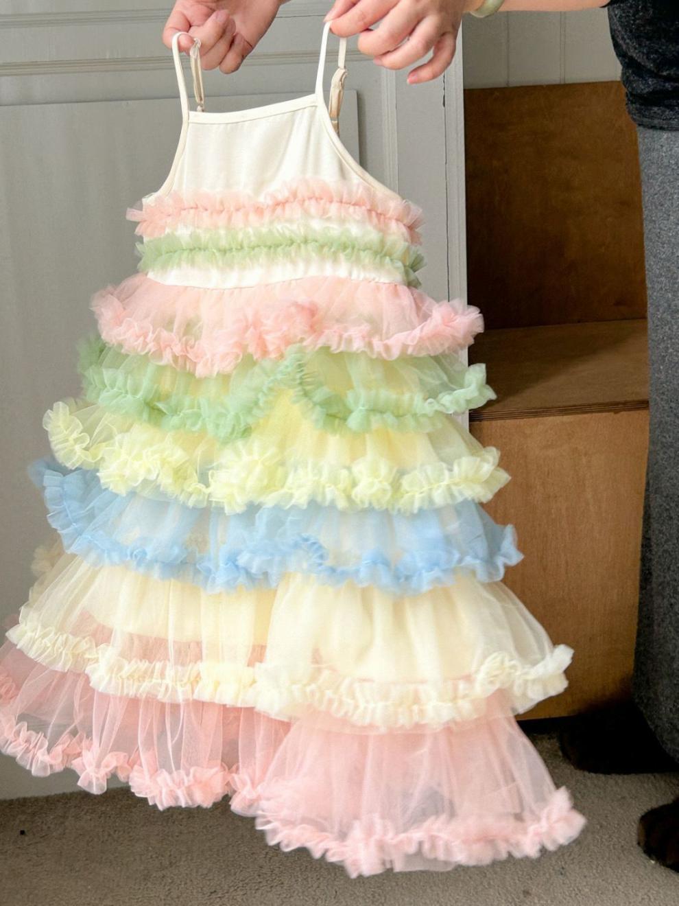 여름 새 여자 드레스 공주 스타일 드레스 어린이 2025 서스펜더 푹신한 무지개 케이크 드레스스토어 가기