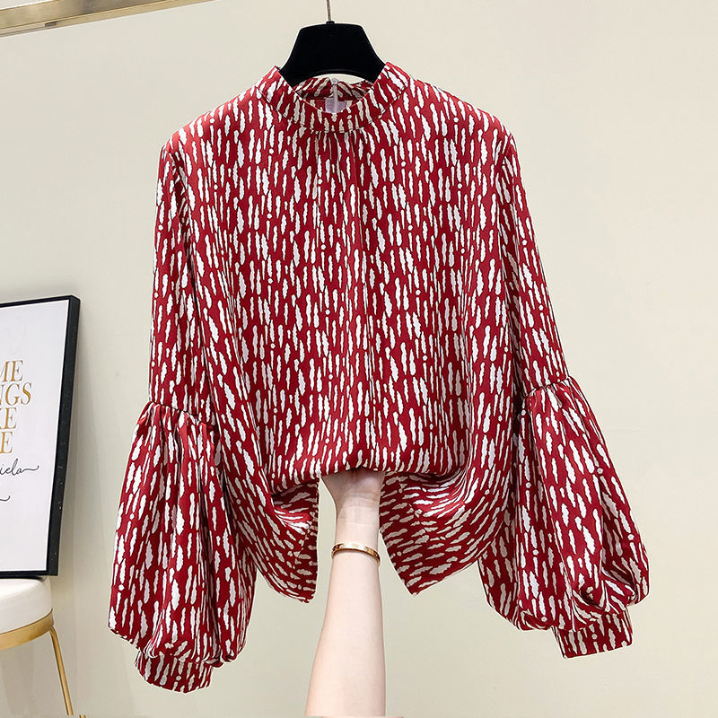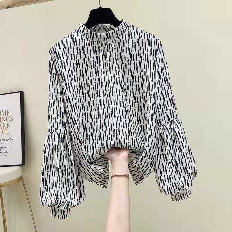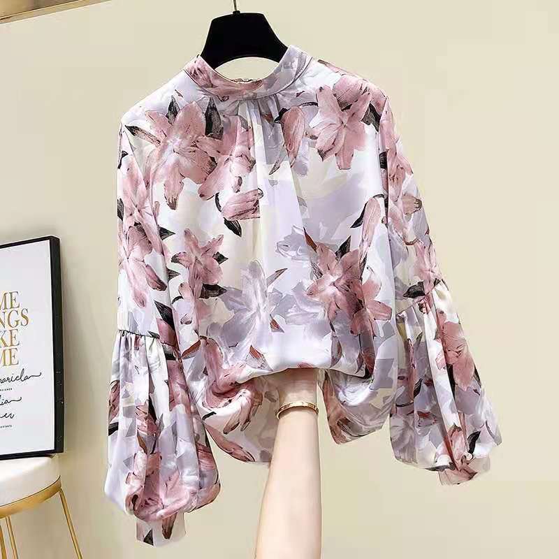 봄, 가을 여성용 랜턴 슬리브 탑 새로운 꽃무늬 셔츠 디자인 틈새 긴팔 쉬폰 셔츠 시크 탑스토어 가기