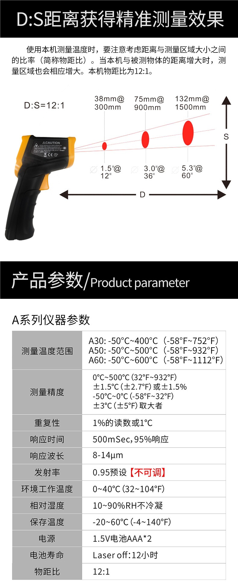 • M60 조정 가능한 방사율 [-50-600도] 건전지 포함