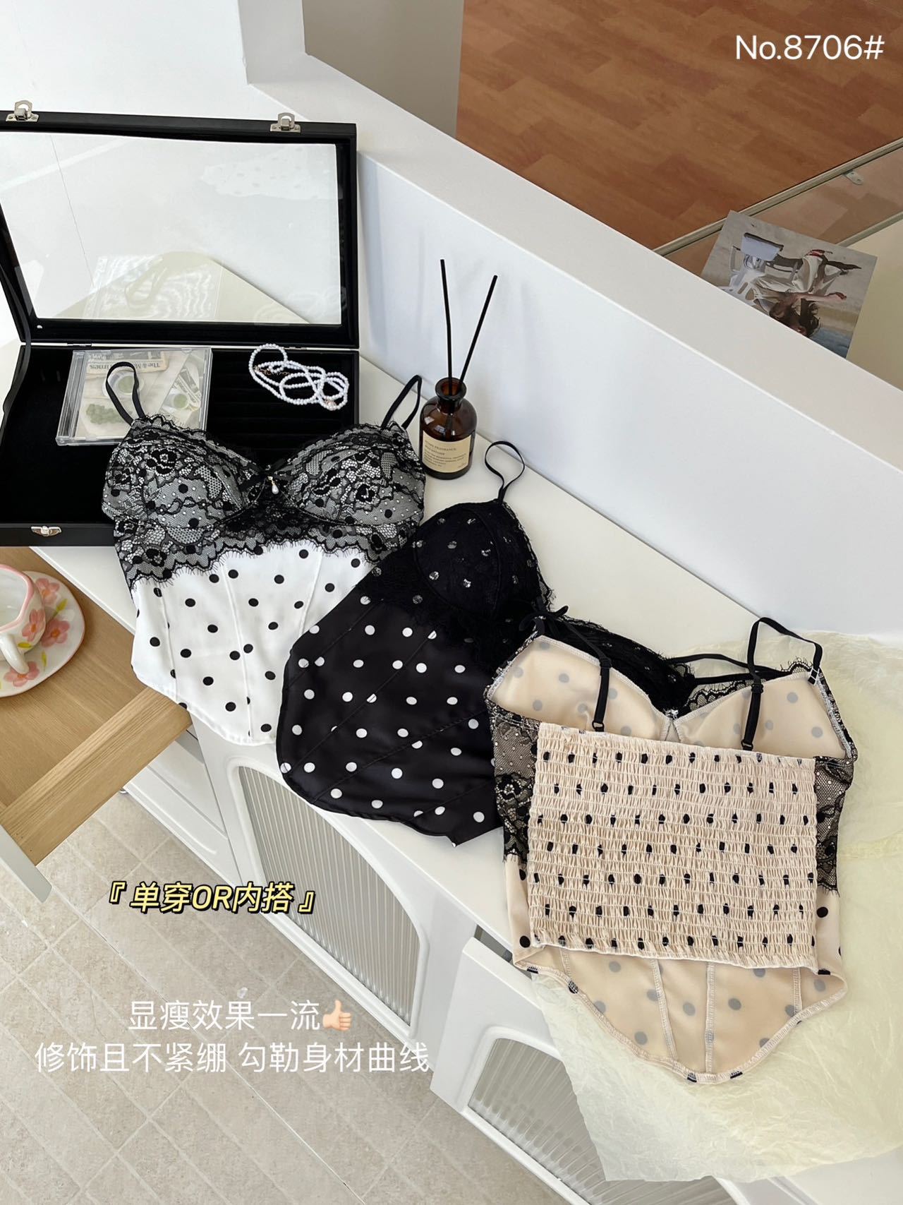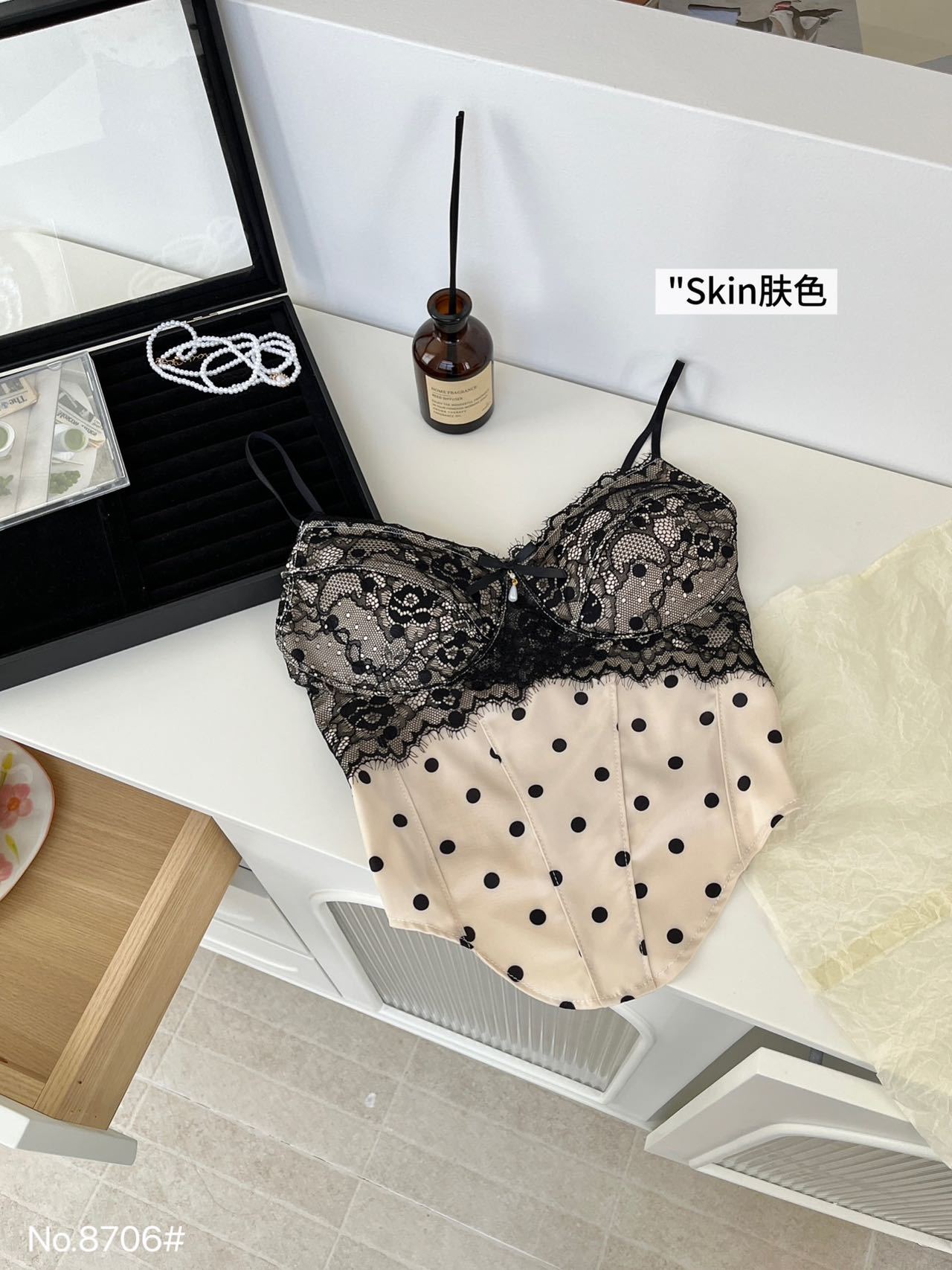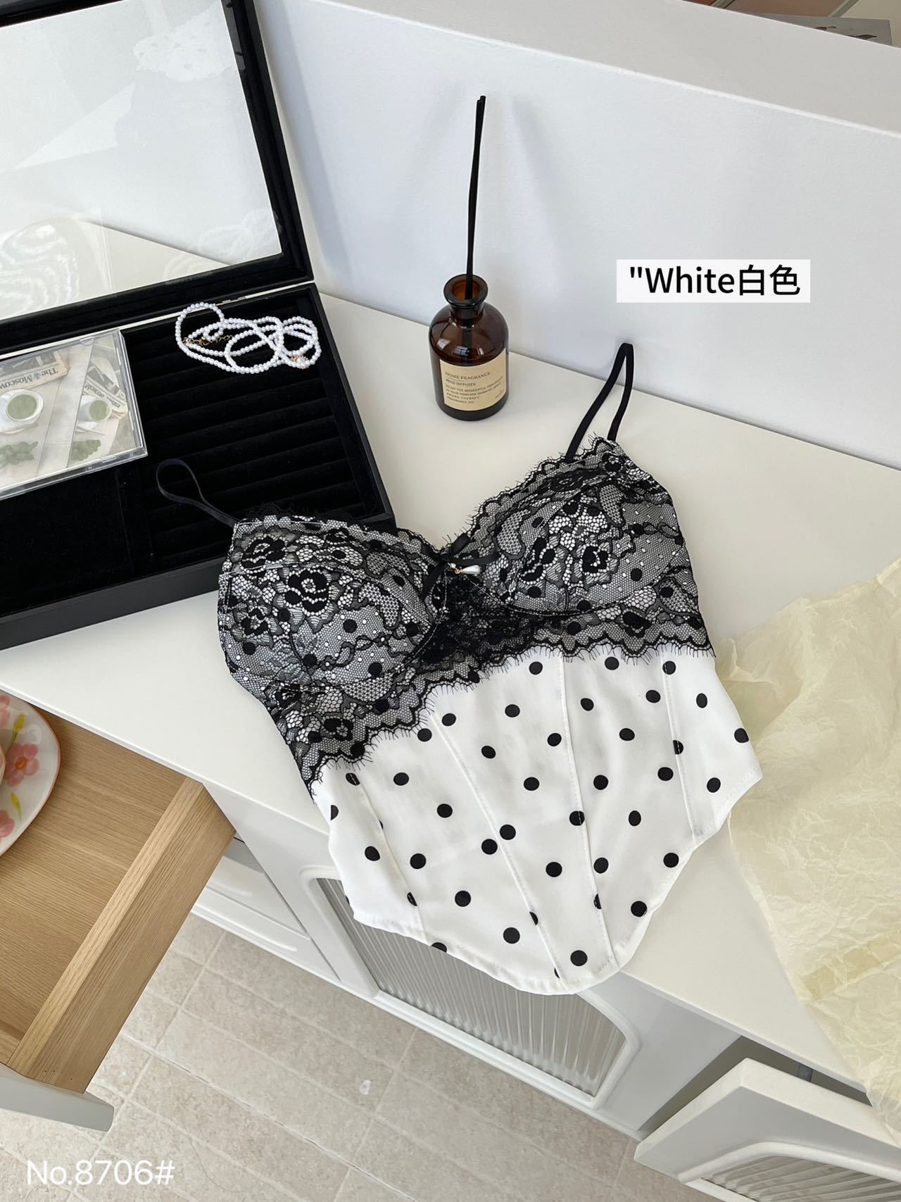 8706 # Pure Desire Hot Girl 스타일 프렌치 레이스 섹시한 캐미솔 탑 여름 자체 가슴 패드 조끼 주름 여성스토어 가기