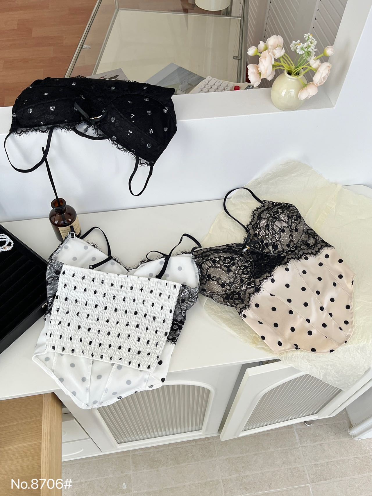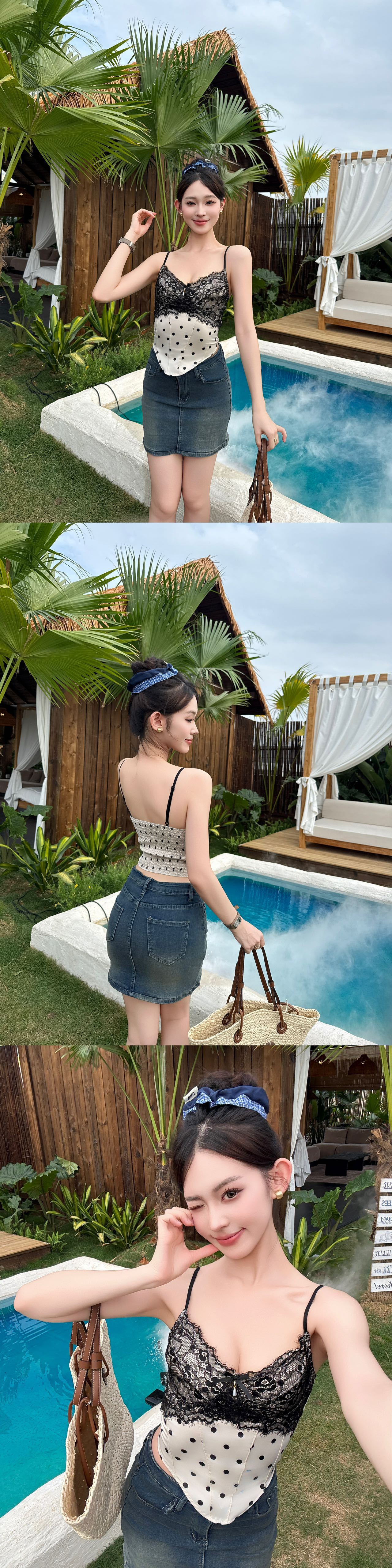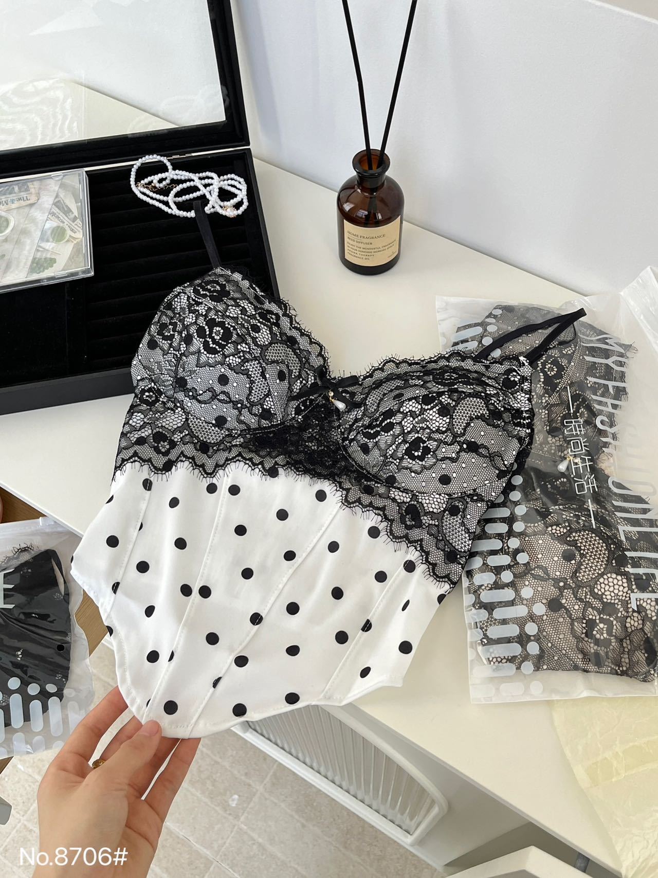 8706 # Pure Desire Hot Girl 스타일 프렌치 레이스 섹시한 캐미솔 탑 여름 자체 가슴 패드 조끼 주름 여성스토어 가기