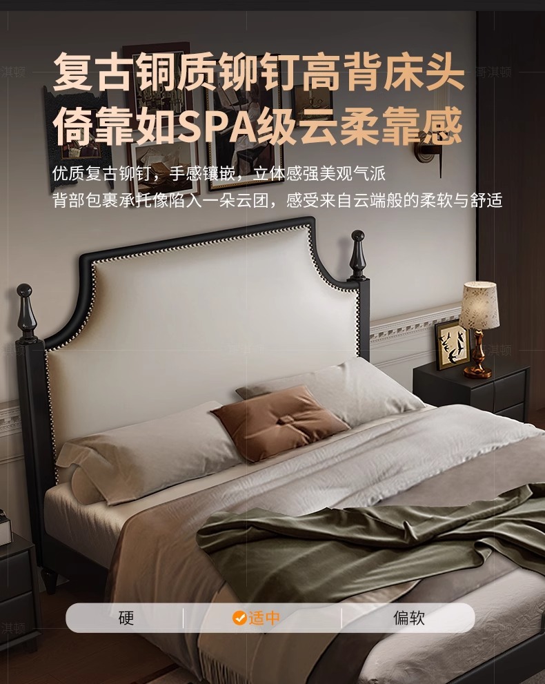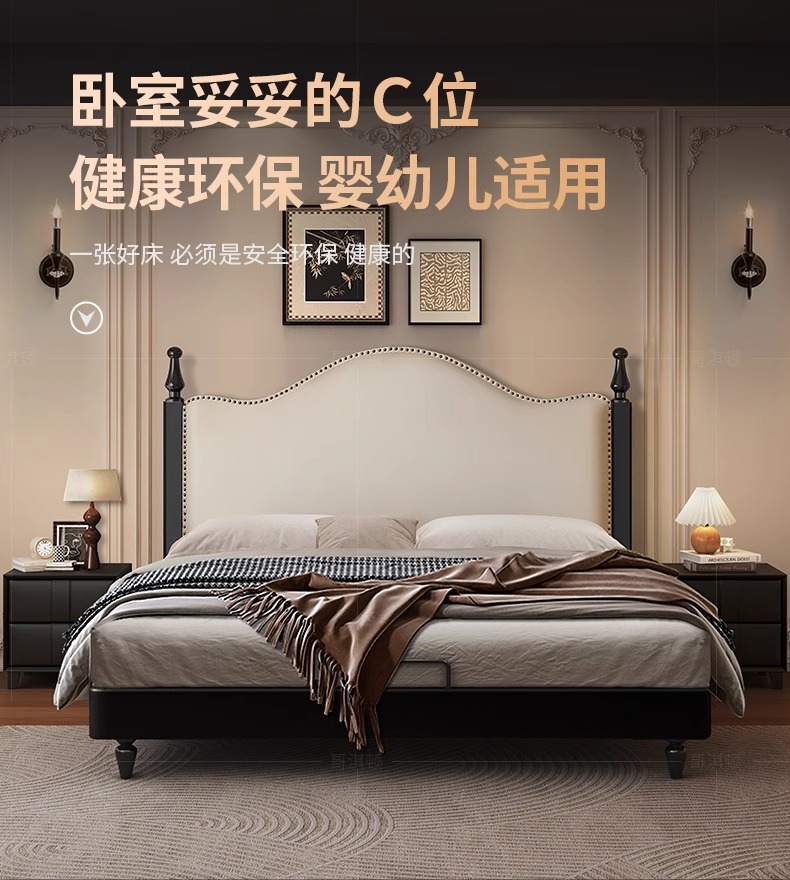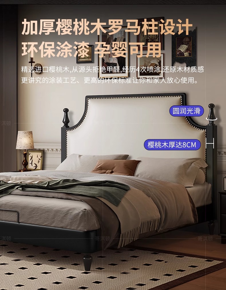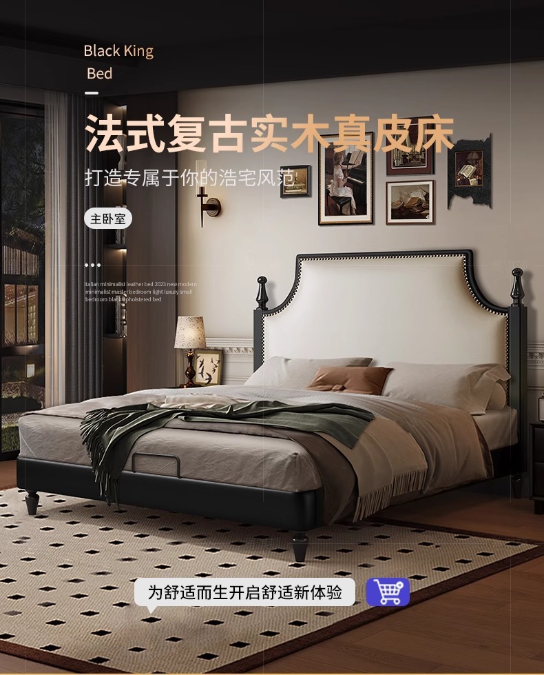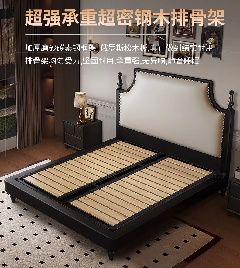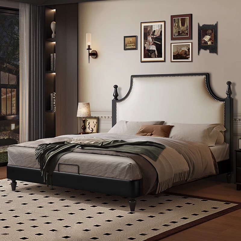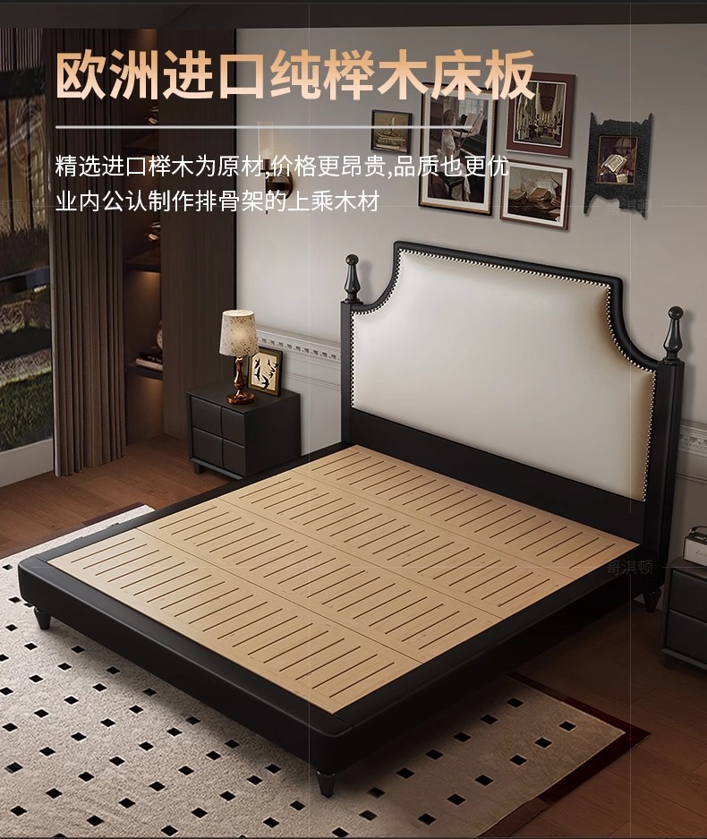 아메리칸 레트로 가죽 침대, 프렌치 라이트 럭셔리 원목 마스터 침실 대형 침대, 고급스럽고 분위기 있는 중세 스타일 더블 수납 웨딩 침대스토어 가기