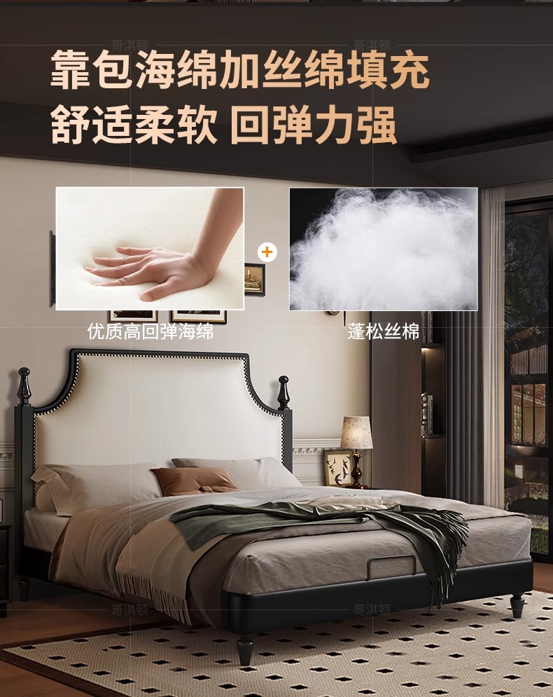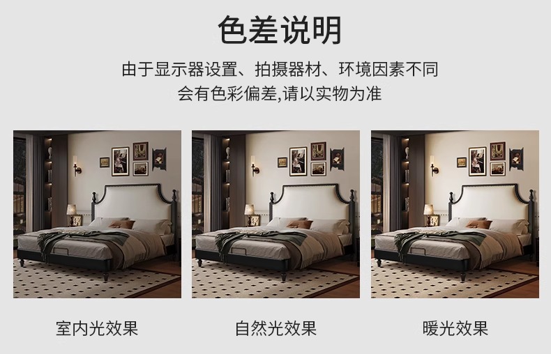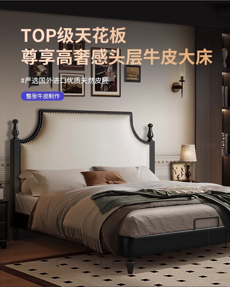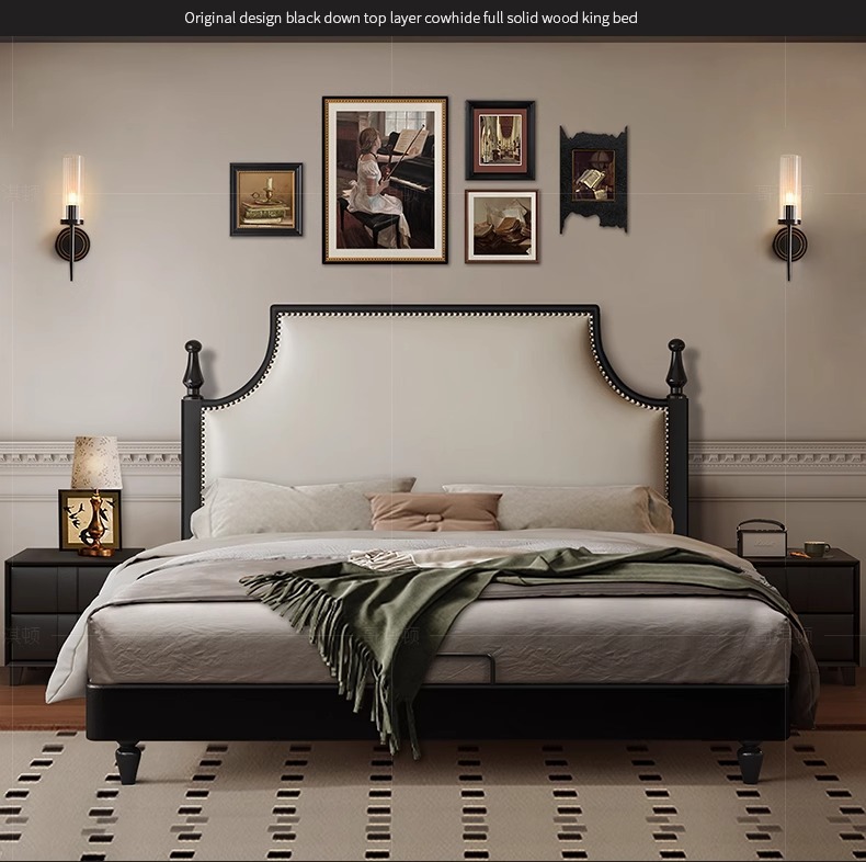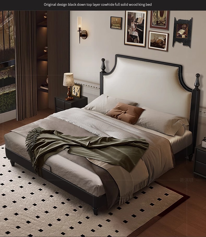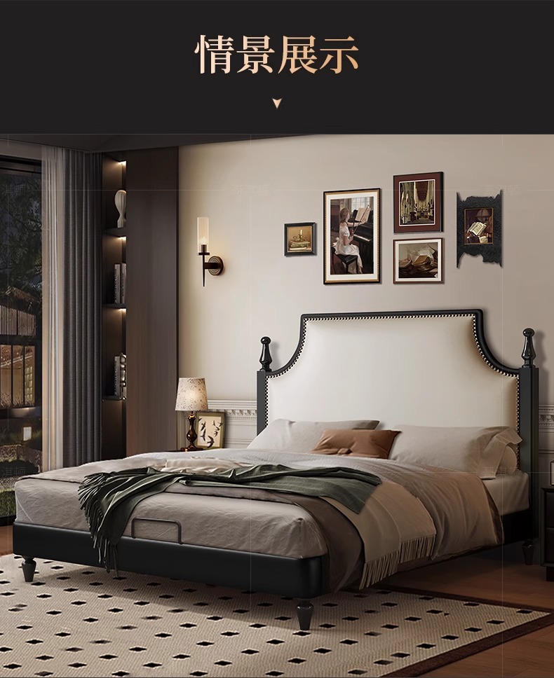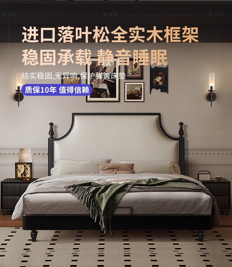 아메리칸 레트로 가죽 침대, 프렌치 라이트 럭셔리 원목 마스터 침실 대형 침대, 고급스럽고 분위기 있는 중세 스타일 더블 수납 웨딩 침대스토어 가기