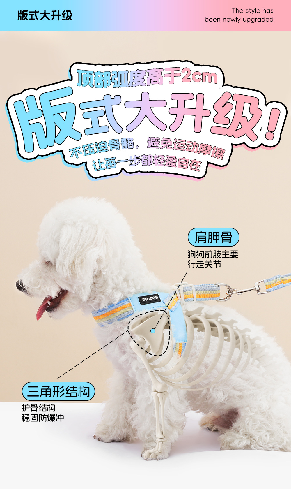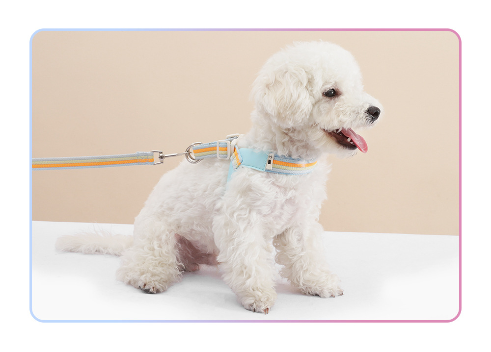 국경 간 새로운 중소형 개 V 자형 무지개 하네스 세트 통기성 방폭형 개 산책용 로프 개 산책용