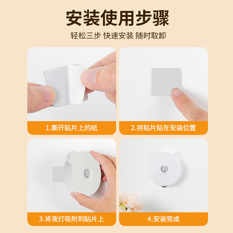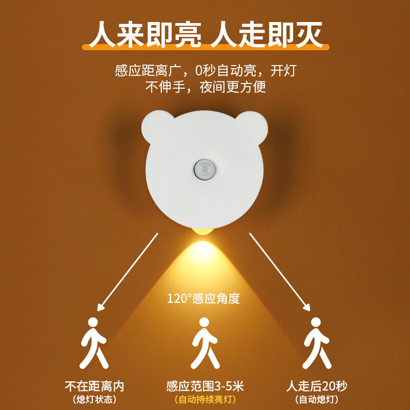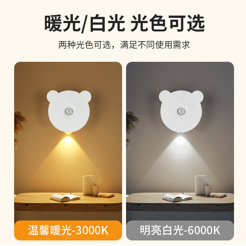 인체 감지 충전식 야간등 침실 침대 옆 화장실 계단 기숙사 배터리 즉시 점등 야간등 조광 가능스토어 가기