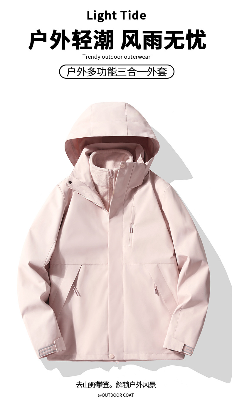 3-in-1 남성 및 여성 신작 재킷 가을, 겨울 야외 하이킹 방풍 및 방수 후드 탈착식 재킷